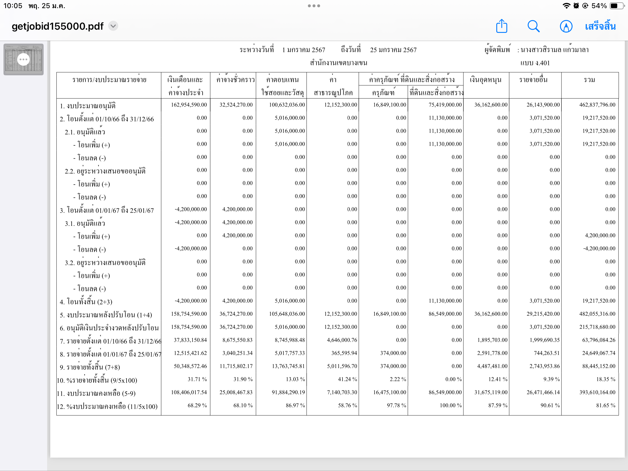 | 1415 | ![]() | 2024-01-25 00:00:00.0000000 | 18.35 | 0.00 | การเบิกจ่ายงบประมาณประจำเดือนมกราคม 2567 | ||