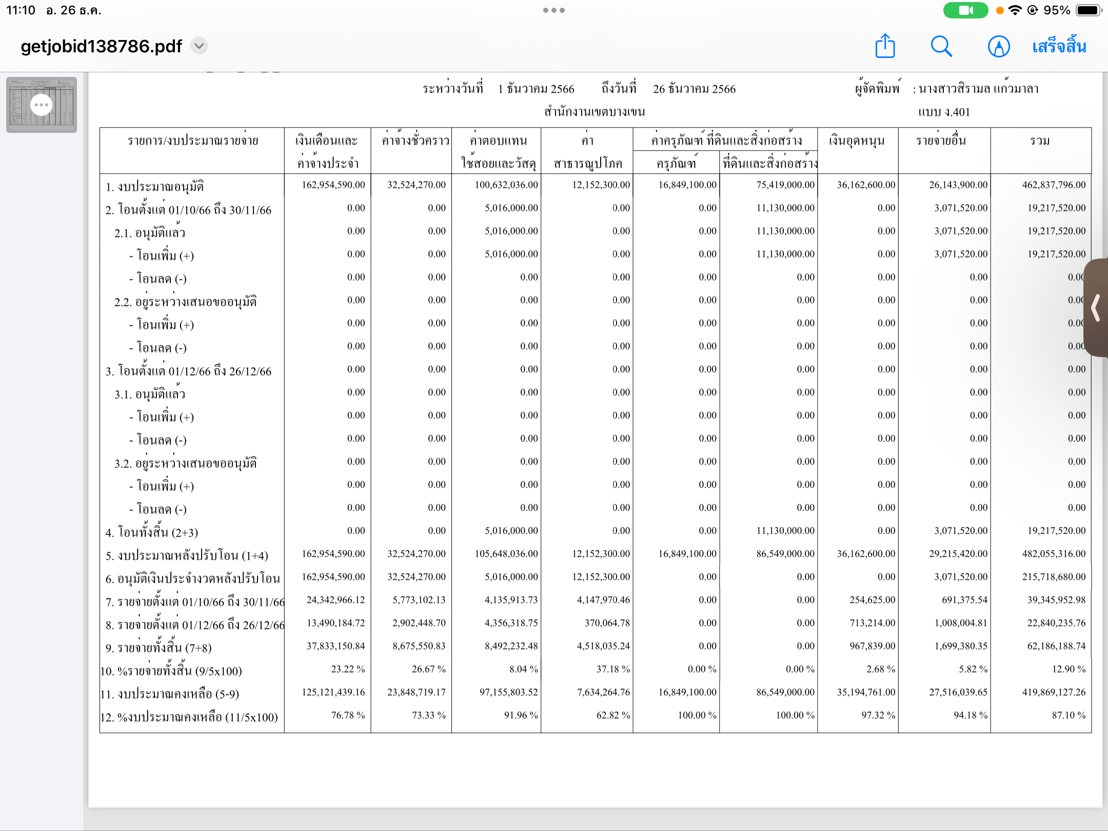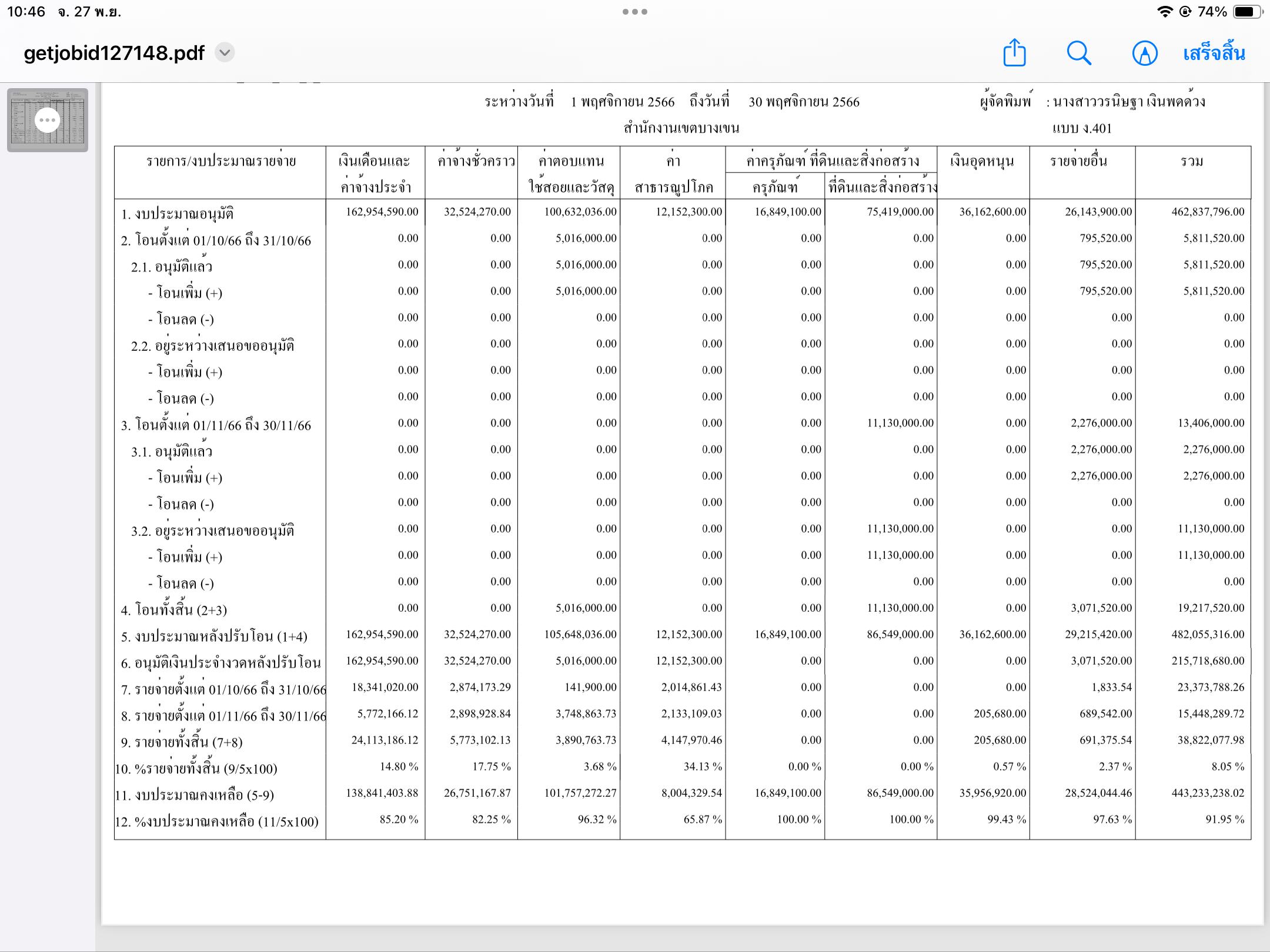 | 1415 | ![]() | 2023-11-27 00:00:00.0000000 | 3.56 | 0.00 | การเบิกจ่ายงบประมาณประจำเดือนตุลาคม 2566 | ||