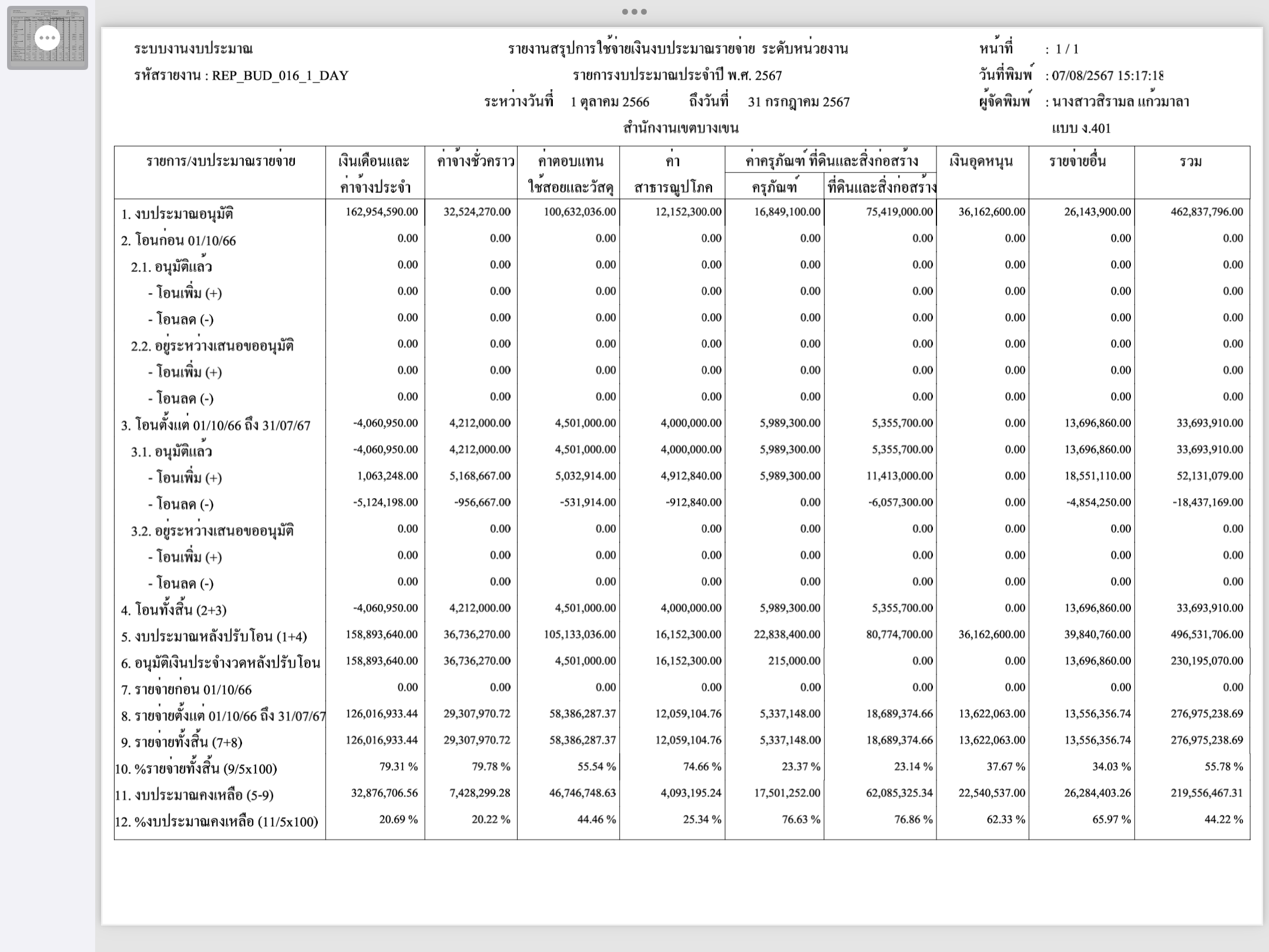 | 1415 | ![]() | 2024-07-31 00:00:00.0000000 | 55.78 | 0.00 | การเบิกจ่ายงบประมาณประจำเดือนกรกฎาคม 2567 | ||