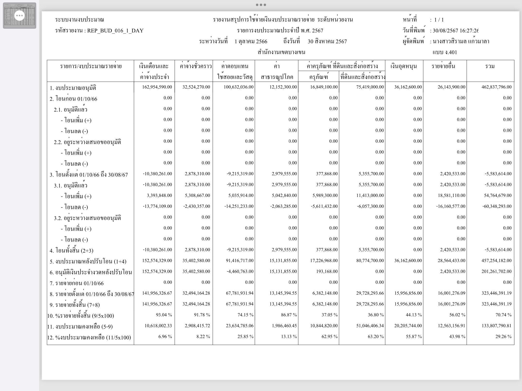 | 1415 | ![]() | 2024-08-30 00:00:00.0000000 | 70.74 | 0.00 | การเบิกจ่ายงบประมาณประจำเดือนสิงหาคม 2567 | ||