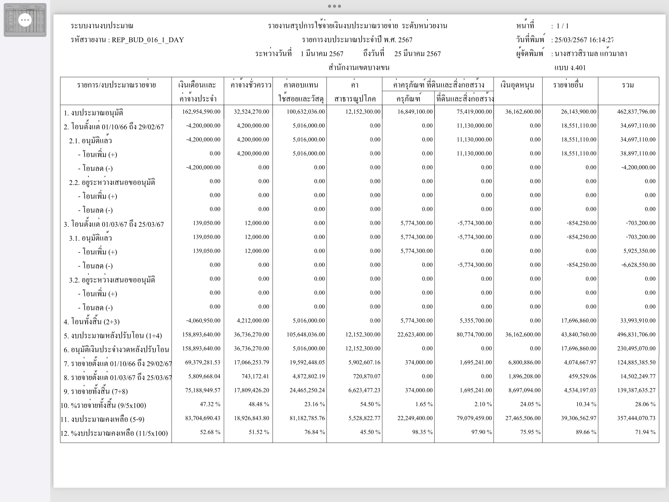 | 1415 | ![]() | 2024-02-28 00:00:00.0000000 | 24.58 | 0.00 | การเบิกจ่ายงบประมาณประจำเดือนกุมภาพันธ์ 2567 | ||