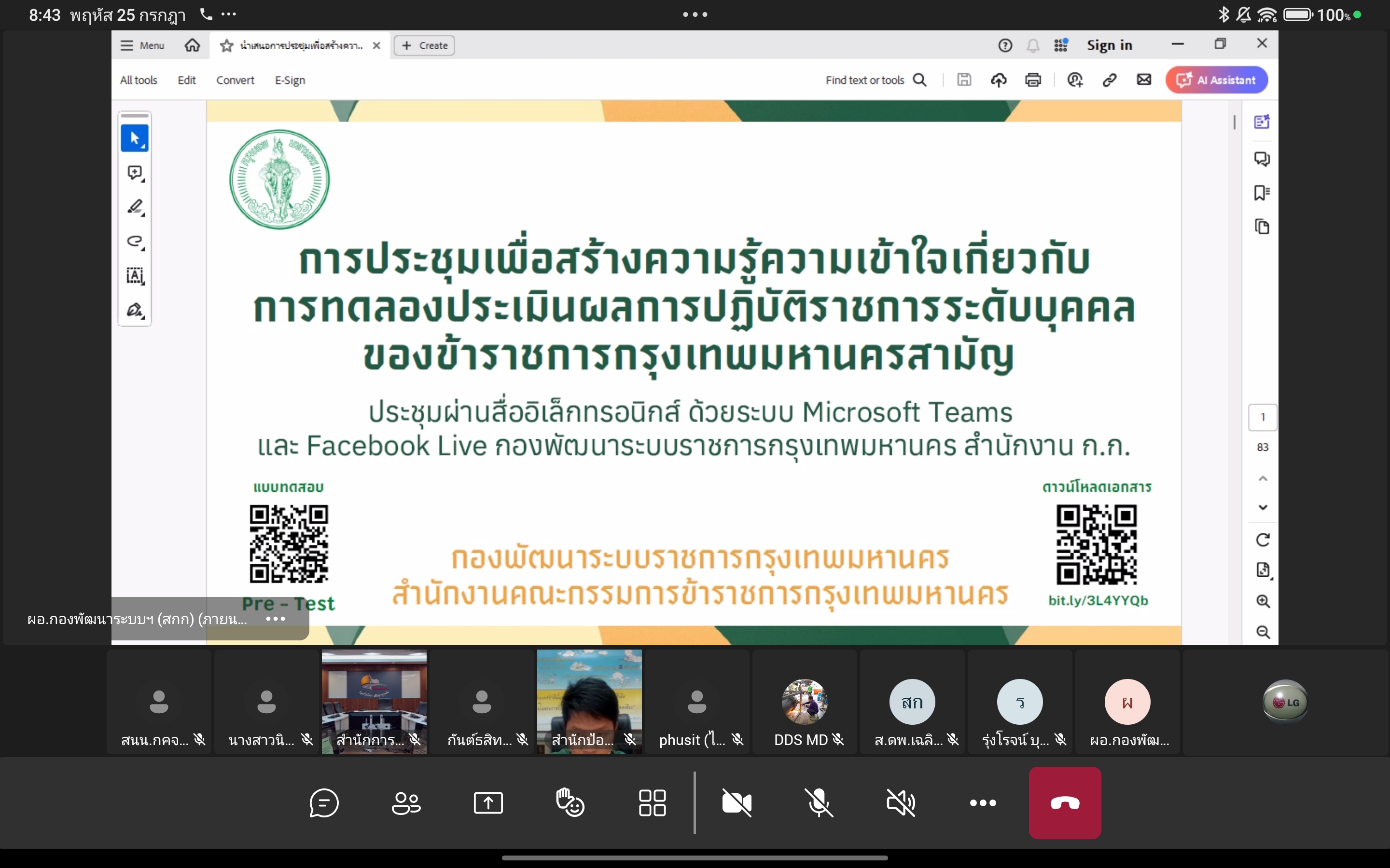 ของข้าราชการกรุงเทพมหานครสามัญ กลุ่มเป้าหมาย ได้แก่ หัวหน้าหน่วยงาน หัวหน้าส่วนราชการในสังกัดสำนักปลัดกรุงเทพมหานคร หัวหน้าฝ่ายการเจ้าหน้าที่ หัวหน้าฝ่ายปกครอง นักทรัพยากรบุคคล และผู้ปฏิบัติงานด้านการเจ้าหน้าที่ เมื่อวันพุธที่ 3 กรกฎาคม 2567 เวลา 09.30 - 12.00 น. โดยประชุมผ่านสื่ออิเล็กทรอนิกส์ด้วยระบบ Microsoft Teams