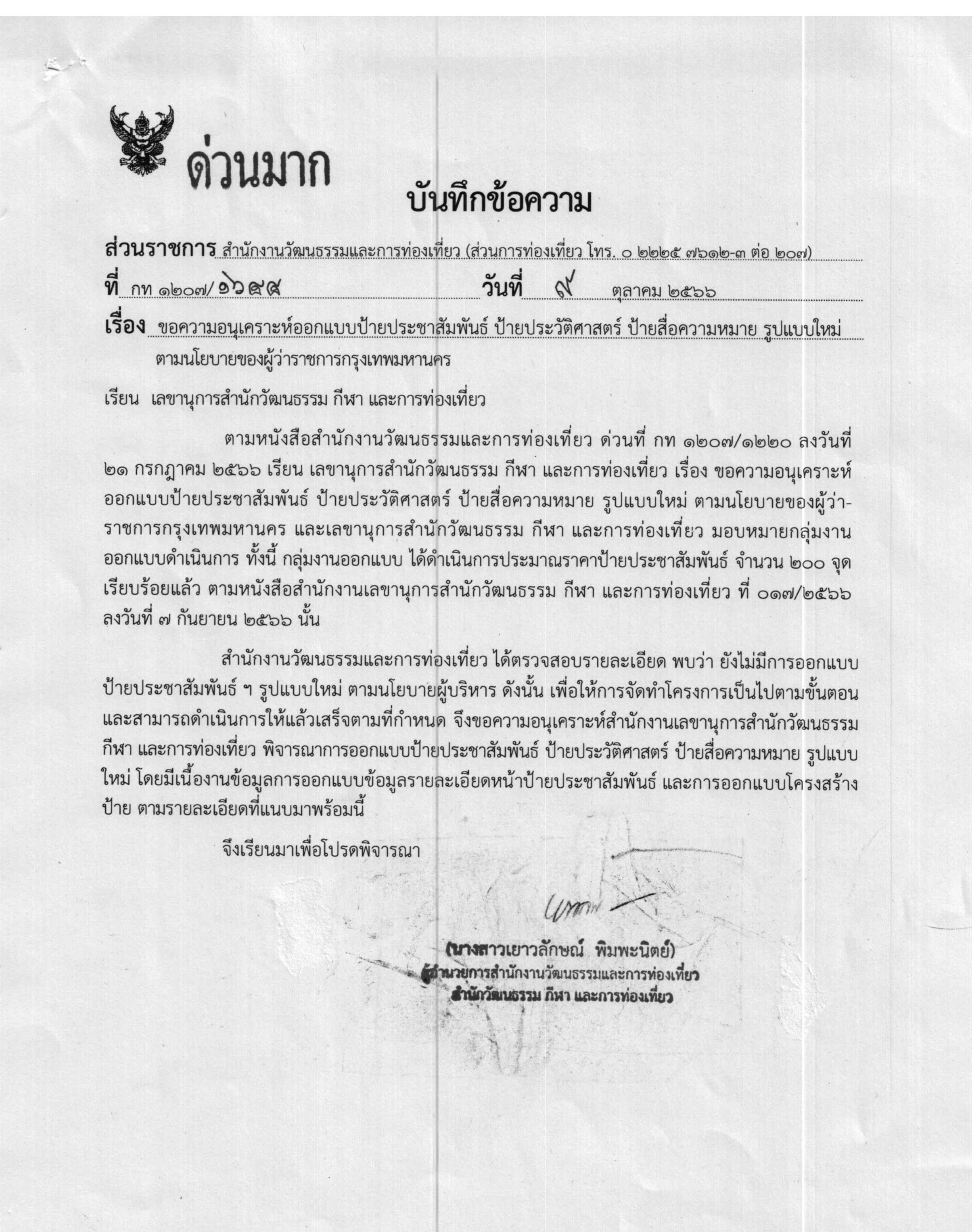 4การดำเนินการพัฒนาระบบป้ายสื่อความหมายในแหล่งท่องเที่ยวกรุงเทพมหานครของผู้รับจ้าง จำนวน ไม่น้อยกว่า 200 ป้าย 50.002024-03-01 00:00:00.00000002024-09-30 00:00:00.0000000