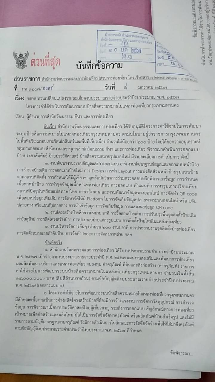 โครงการพัฒนาระบบป้ายสื่อความหมายในแหล่งท่องเที่ยว14,000,000.0020.00สำนักวัฒนธรรม กีฬาและการท่องเที่ยวกลุ่มงานแผนงานและประเมินผล