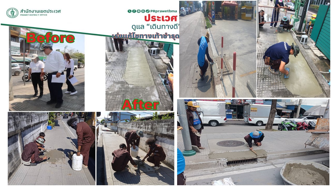 42024-09-11 00:00:00.00000001.000.00เนื่องจากในปีงบประมาณ พ.ศ.2567 ทางสำนักงานเขตประเวศไม่ได้รับงบประมาณในการปรับปรุงทางเท้า ทางสำนักงานเขตจึงได้ดำเนินการตามอำนาจหน้าที่ในการแก้ไขปรับปรุงทางเท้าที่ชำรุดเพื่อเป็นการแก้ไขปัญหาเบื้องต้นใก้กับประชาชน และยังเป็นการป้องกันการเกิดอุบัติเหตุจากการสัญจร