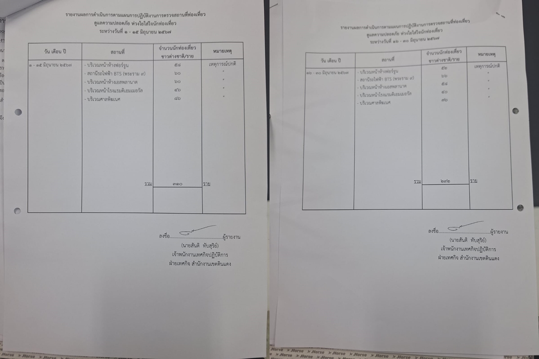 | 612 | ![]() | 2024-07-03 00:00:00.0000000 | 60.00 | 0.00 | ฝ่ายเทศกิจ สำนักงานเขตดินแดง จัดเจ้าหน้าที่ออกตรวจตราในพื้นที่แหล่งท่องเที่ยว วันละ 2 ครั้ง ตั้งแต่วันที่ 1-30 มิถุนายน 2567 ได้แก่ บริเวณหน้าห้างฟอร์จูน, สถานีรถไฟฟ้า BTS (พระราม 9), บริเวณหน้าห้างเอสพลานาด, บริเวณหน้าโรงแรมดิเอมเมอรัล, บริเวณศาลพิฆเนศ มีจำนวนนักท่องเที่ยวชาวต่างชาติ 602 ราย เหตุการณ์ปกติ | ||