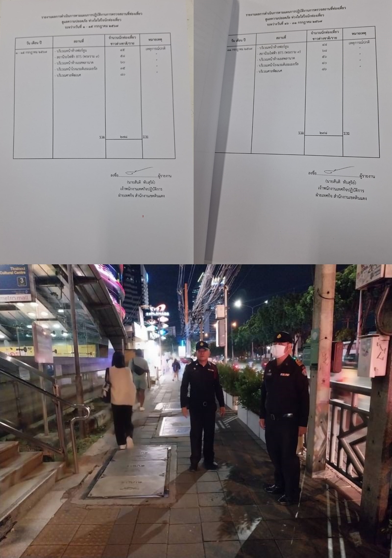 | 612 | ![]() | 2024-08-09 00:00:00.0000000 | 62.00 | 0.00 | ฝ่ายเทศกิจ สำนักงานเขตดินแดง จัดเจ้าหน้าที่ออกตรวจตราในพื้นที่แหล่งท่องเที่ยว วันละ 2 ครั้ง ตั้งแต่วันที่ 1-30 กรกฎาคม 2567 ได้แก่ บริเวณหน้าห้างฟอร์จูน, สถานีรถไฟฟ้า BTS (พระราม 9), บริเวณหน้าห้างเอสพลานาด, บริเวณหน้าโรงแรมดิเอมเมอรัล, บริเวณศาลพิฆเนศ มีจำนวนนักท่องเที่ยวชาวต่างชาติ 576 ราย เหตุการณ์ปกติ | ||