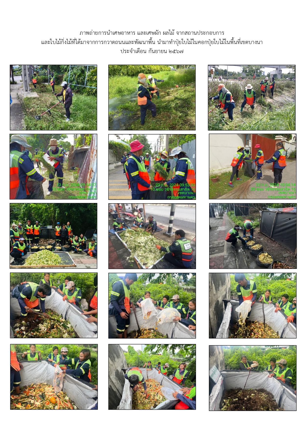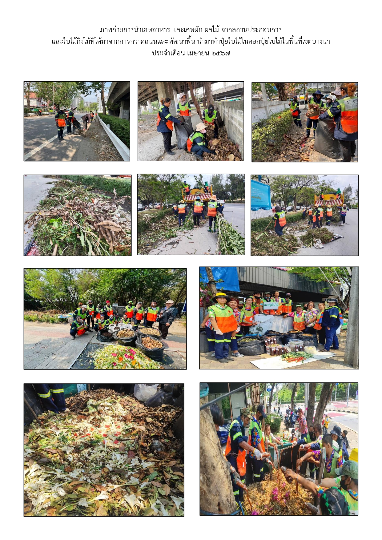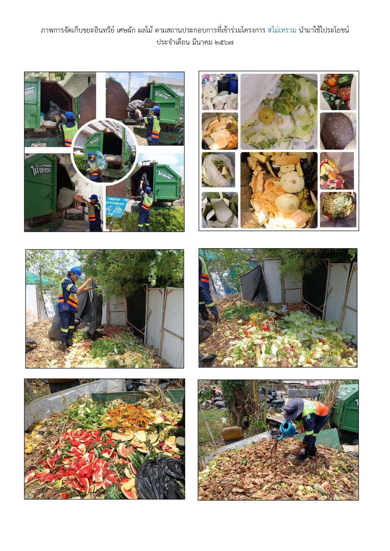 | 24 |  | 2024-04-25 00:00:00.0000000 | 10.00 | 0.00 |  | ดำเนินการคัดแยกขยะมูลฝอยจากแหล่งกำเนิดนำกลับมาใช้ประโยชน์และกำจัดอย่างถูกวิธี ประจำเดือนเมษายน 2567 ปริมาณคัดแยกขยะอินทรีย์จำนวน 61 แห่ง 692.120 ตัน | |
