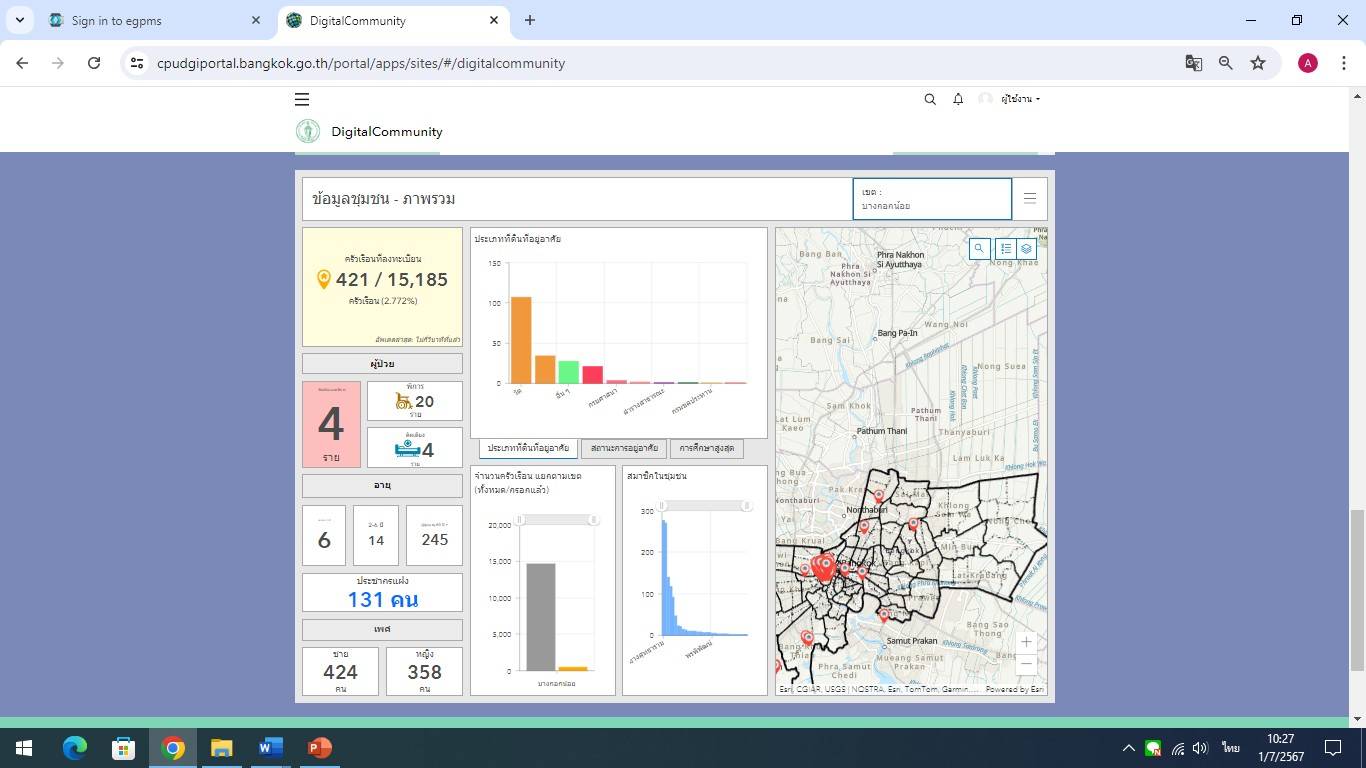 -พัฒนาฐานข้อมูลออนไลน์ชุมชน เช่น ข้อมูลกลุ่มเปราะบาง ข้อมูลอุปกรณ์ป้องกันและบรรเทาสาธารณภัย (ชุมชน)0.00100.00สำนักงานเขตบางกอกน้อยฝ่ายพัฒนาชุมชนและสวัสดิการสังคม