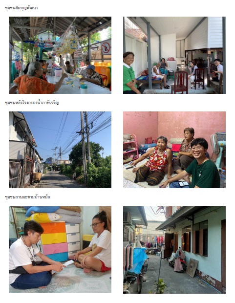 | 18 | ![]() | 2024-07-15 00:00:00.0000000 | 12.00 | 0.00 | สำรวจกลุ่มเปราะบาง ปักหมุด และทำฐานข้อมูลชุมชนไปแล้ว จำนวน 12 ชุมชน ได้แก่ ชุมชนปรกอรุณ ชุมชนวัดท่าพระ ชุมชนริมคลองบางกอกใหญ่ ชุมชนวัดนาคกลาง ชุมชนจำเนียรสุข 3 ชุมชนวัดใหม่วิเชียร ชุมชนหลังวัดใหม่วิเชียร ชุมชนวัดดีดวด ชุมชนโค้งกระเทียม ชุมชนวัดหงส์รัตนาราม ชุมชนวัดโมลีโลกยาราม และชุมชนวัดเครือวัลย์ | ||