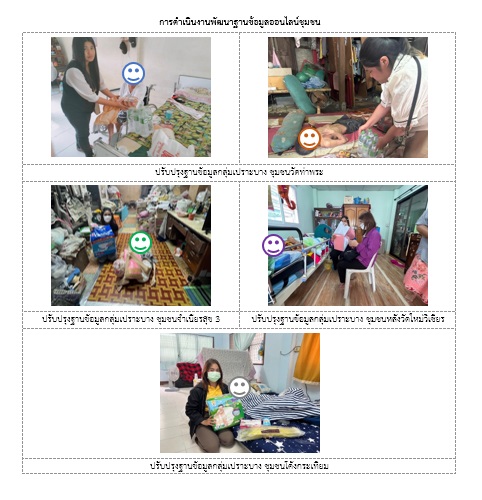 | 18 | ![]() | 2024-05-28 00:00:00.0000000 | 0.00 | 0.00 | สำรวจข้อมูลกลุ่มเปราะบาง ปักหมุดพื้นทีในชุมชนสมบุญพัฒนา ชุมชนหลังโรงกรองน้ำภาษีเจริญ และชุมชนลานมะขามบ้านหม้อ | ||