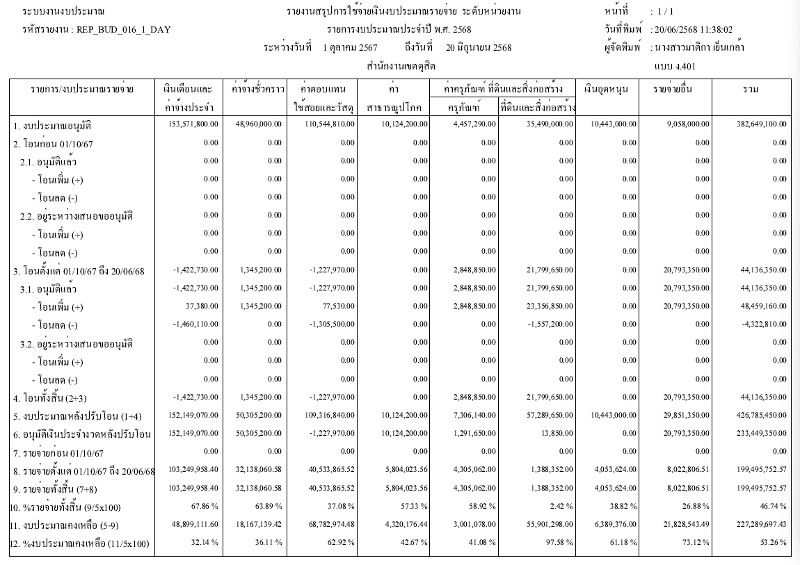 ![]() | - | กิจกรรมการเบิกจ่ายงบประมาณในภาพรวม | 0.00 | 100.00 | สำนักงานเขตดุสิต | ฝ่ายการคลัง |