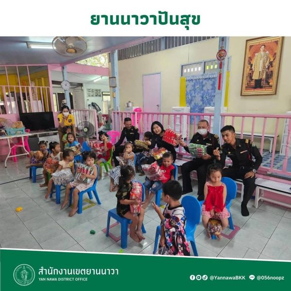 ข้าราชการและบุคลากรสังกัดสำนักงานเขตยานนาวา ร่วมส่งความสุขให้แก่เด็กๆ โดยมอบขนม ของเล่นและสิ่งของจำเป็นให้แก่เด็ก ๆ ศูนย์พัฒนาเด็กเล็กก่อนวัยเรียนในพื้นที่เขตยานนาวา ในกิจกรรมยานนาวาปันสุข ภายใต้โครงการ “ยานนาวา กายดี ใจดี Happy Workplace”