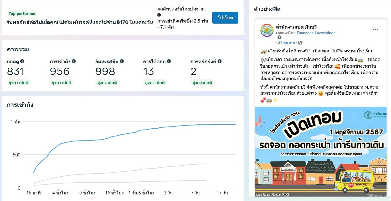 ![]() | - | กิจกรรมการเผยแพร่สื่อประชาสัมพันธ์และการเข้าถึงสื่อประชาสัมพันธ์ที่เผยแพร่(Engagement) | 0.00 | 100.00 | สำนักงานเขตมีนบุรี | ฝ่ายปกครอง |