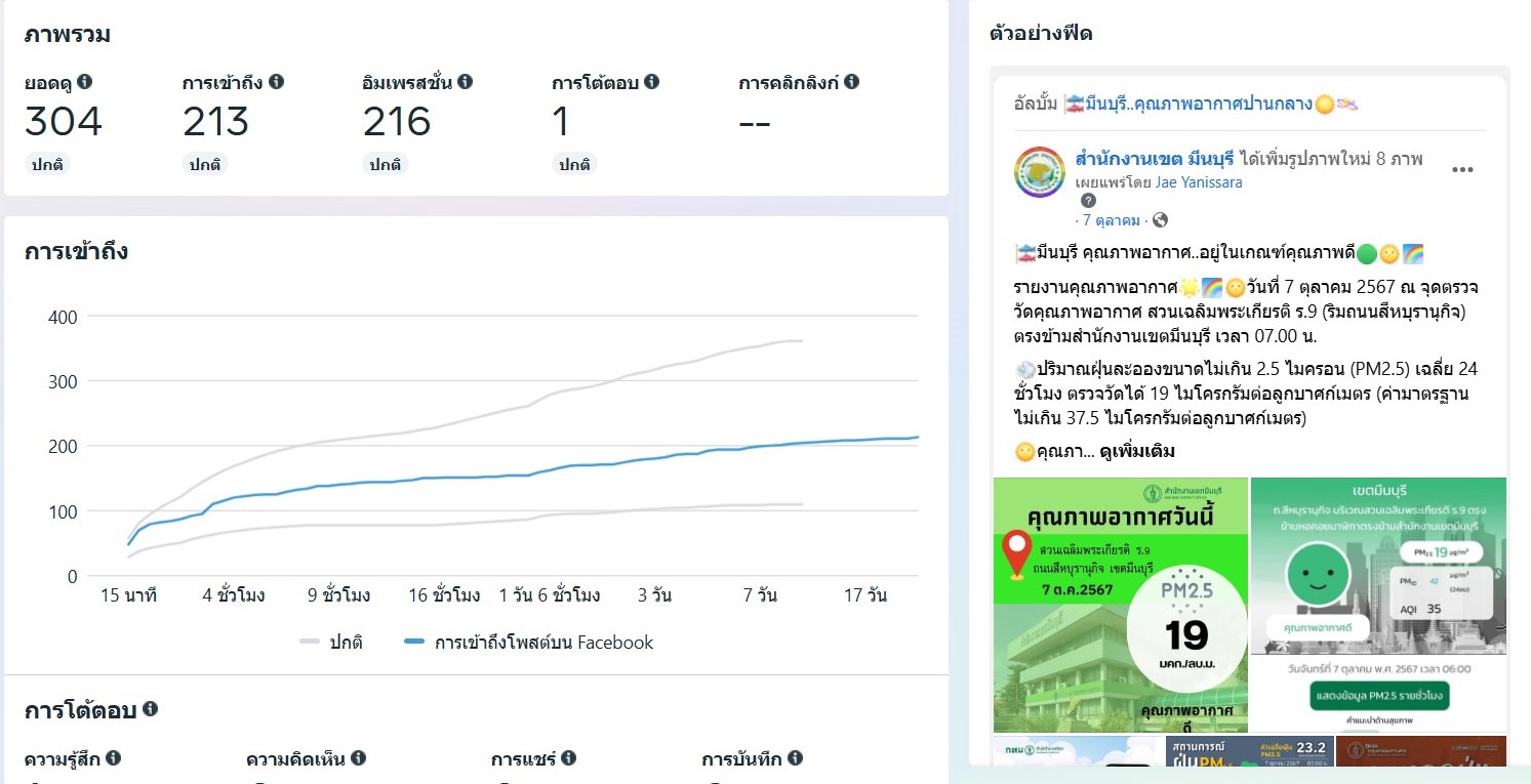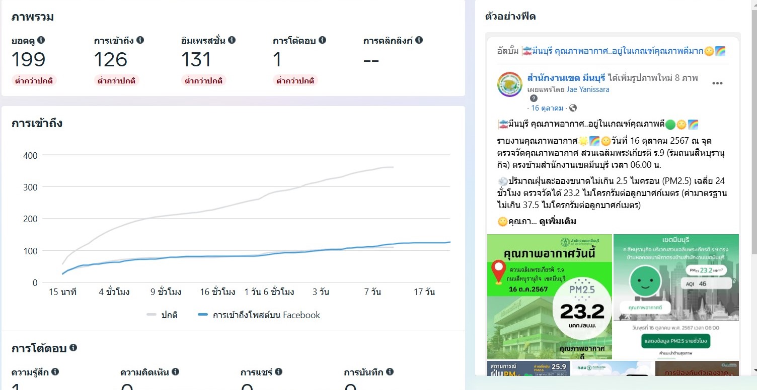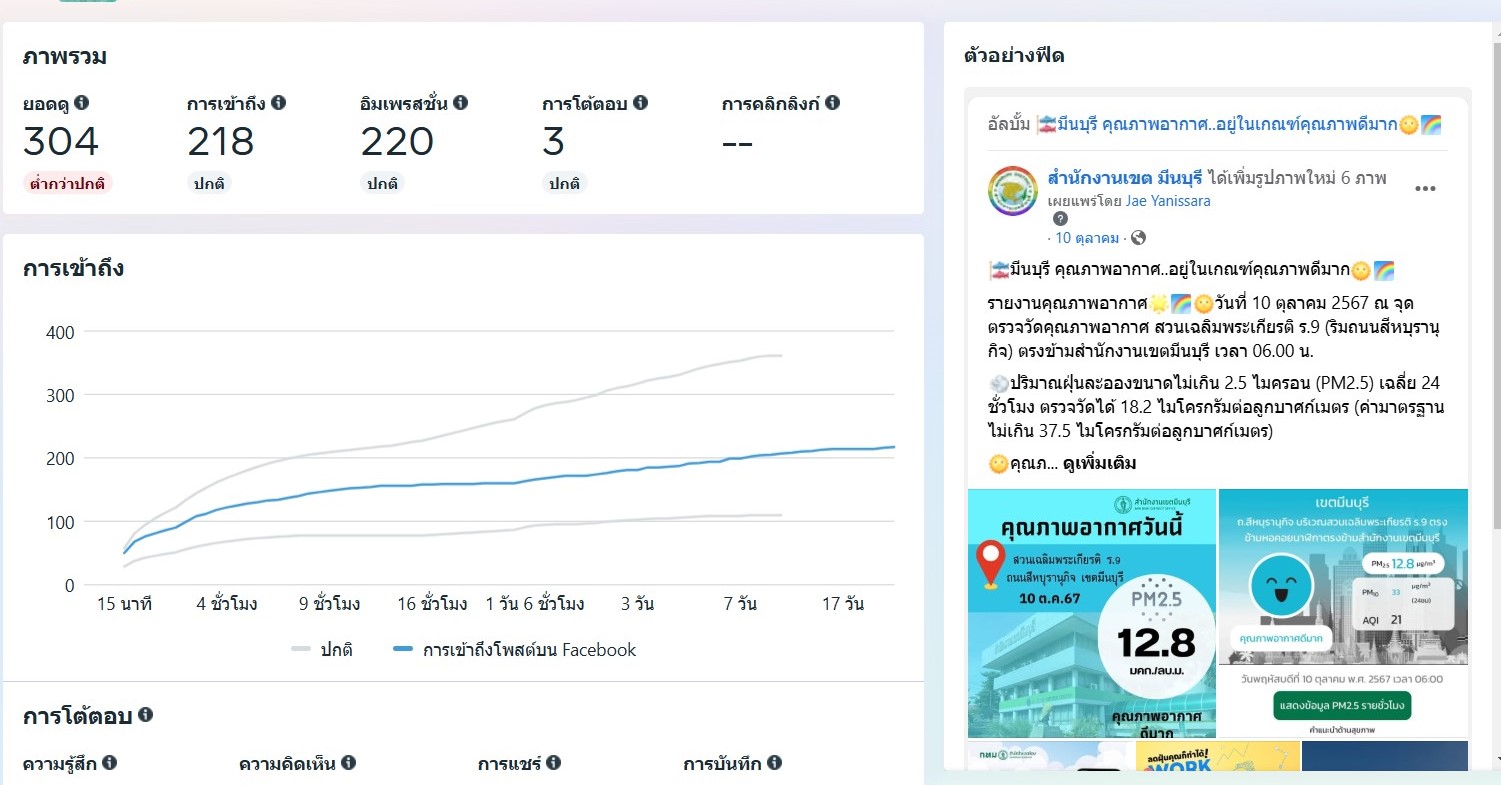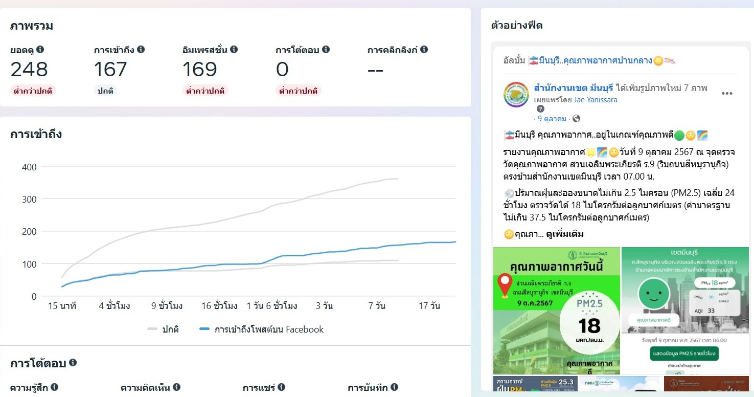 ![]() | - | กิจกรรมการเผยแพร่สื่อประชาสัมพันธ์และการเข้าถึงสื่อประชาสัมพันธ์ที่เผยแพร่(Engagement) | 0.00 | 100.00 | สำนักงานเขตมีนบุรี | ฝ่ายปกครอง |
