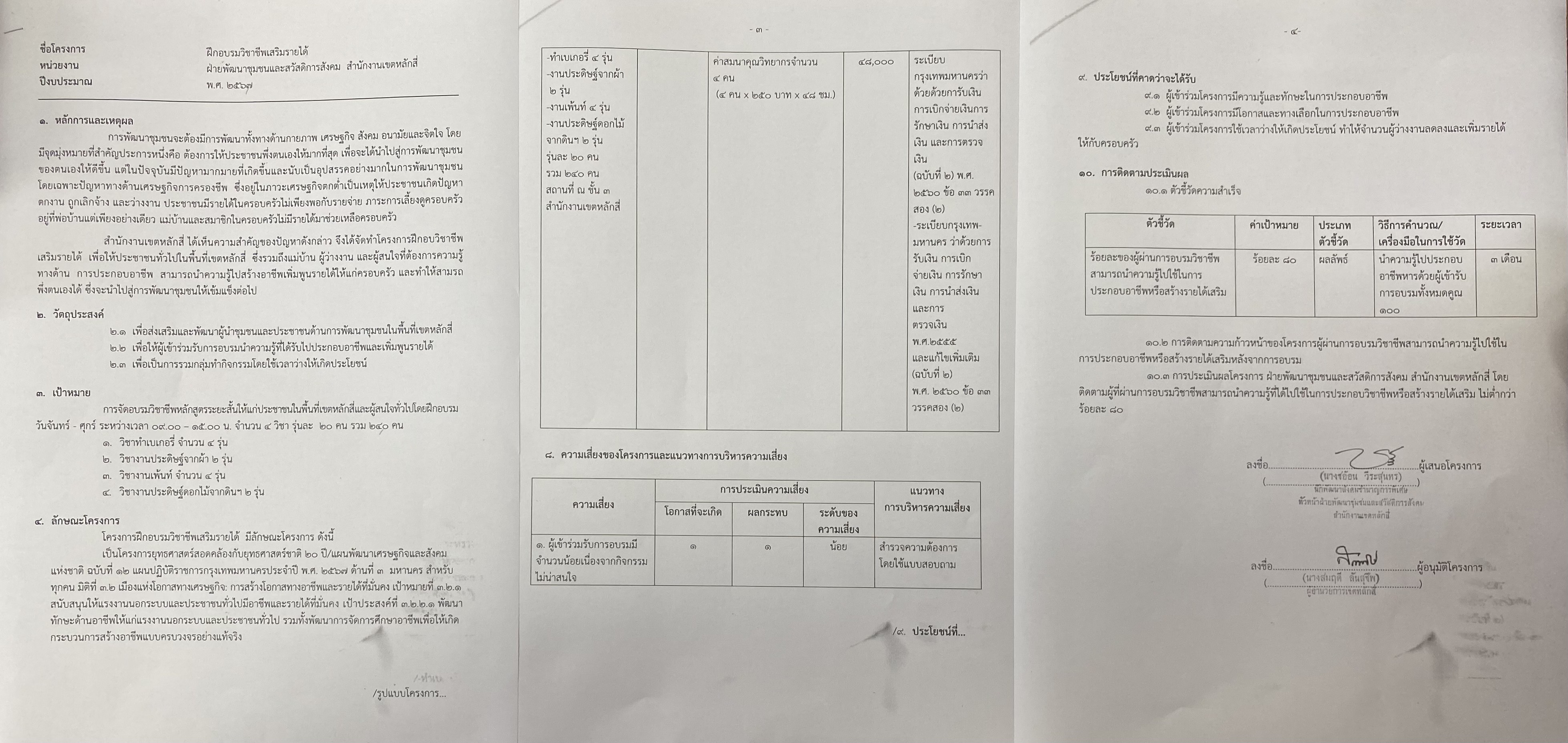 ข้อมูลโครงการ :: ค่าใช้จ่ายในการฝึกอบรมวิชาชีพเสริมรายได้
