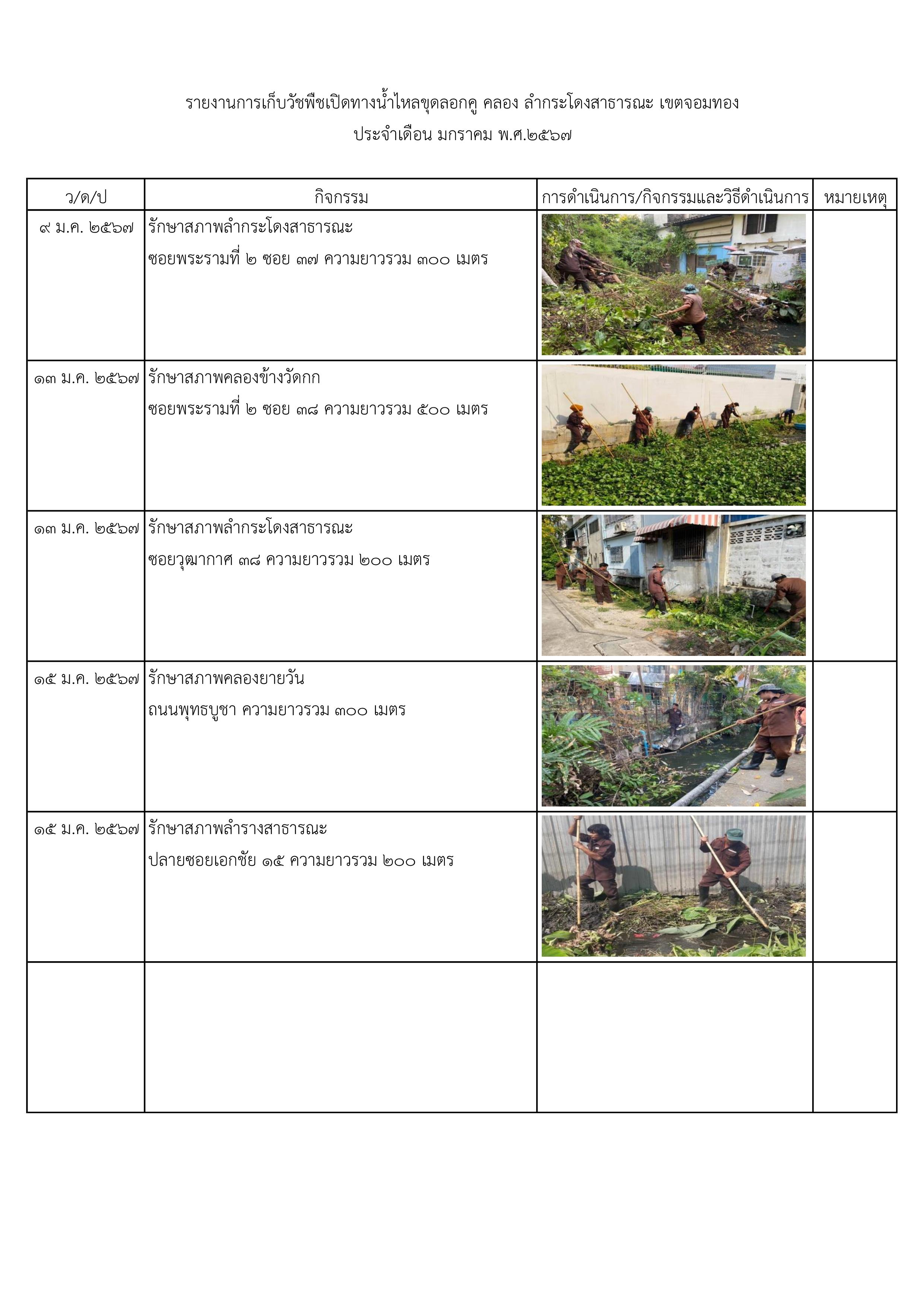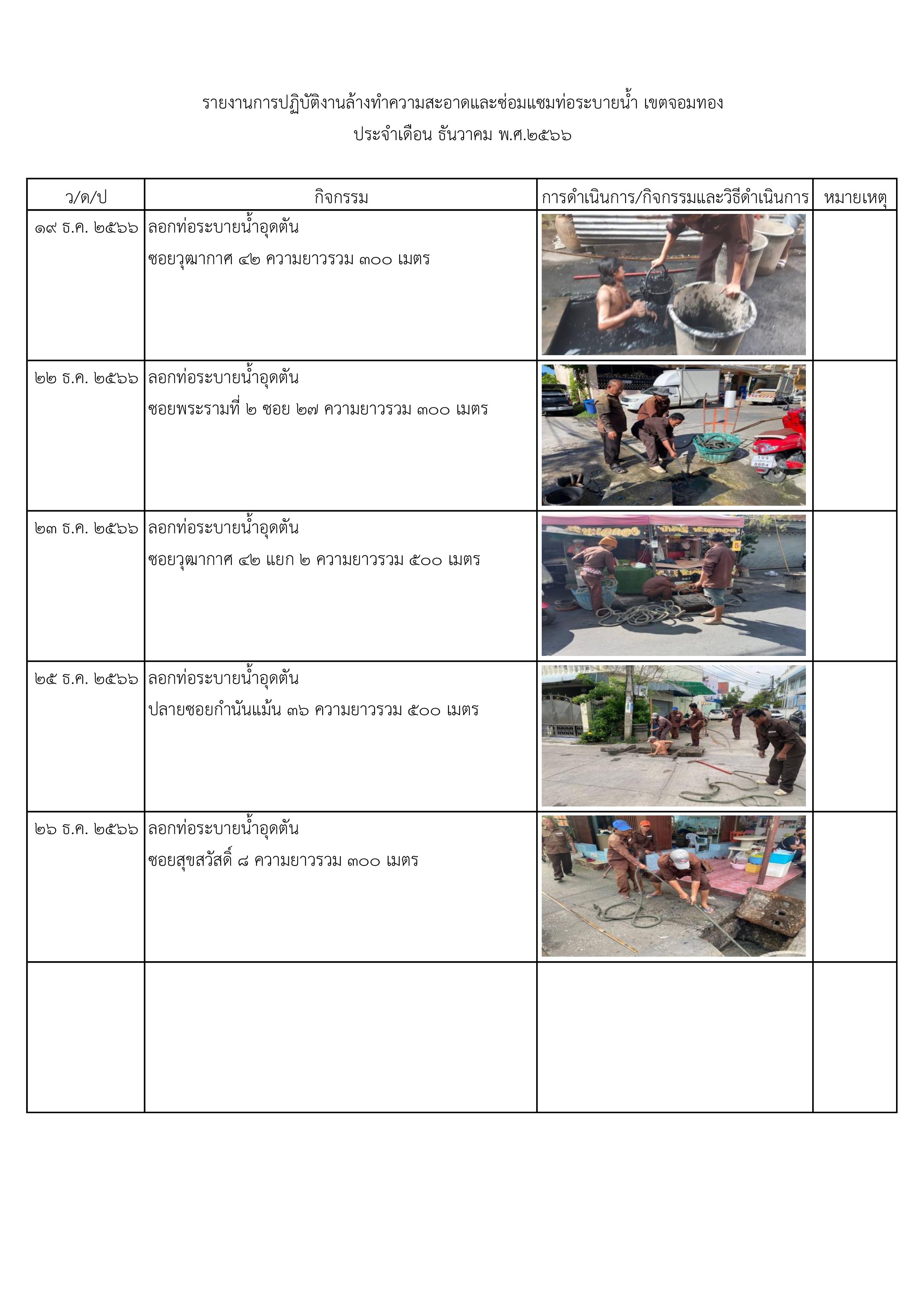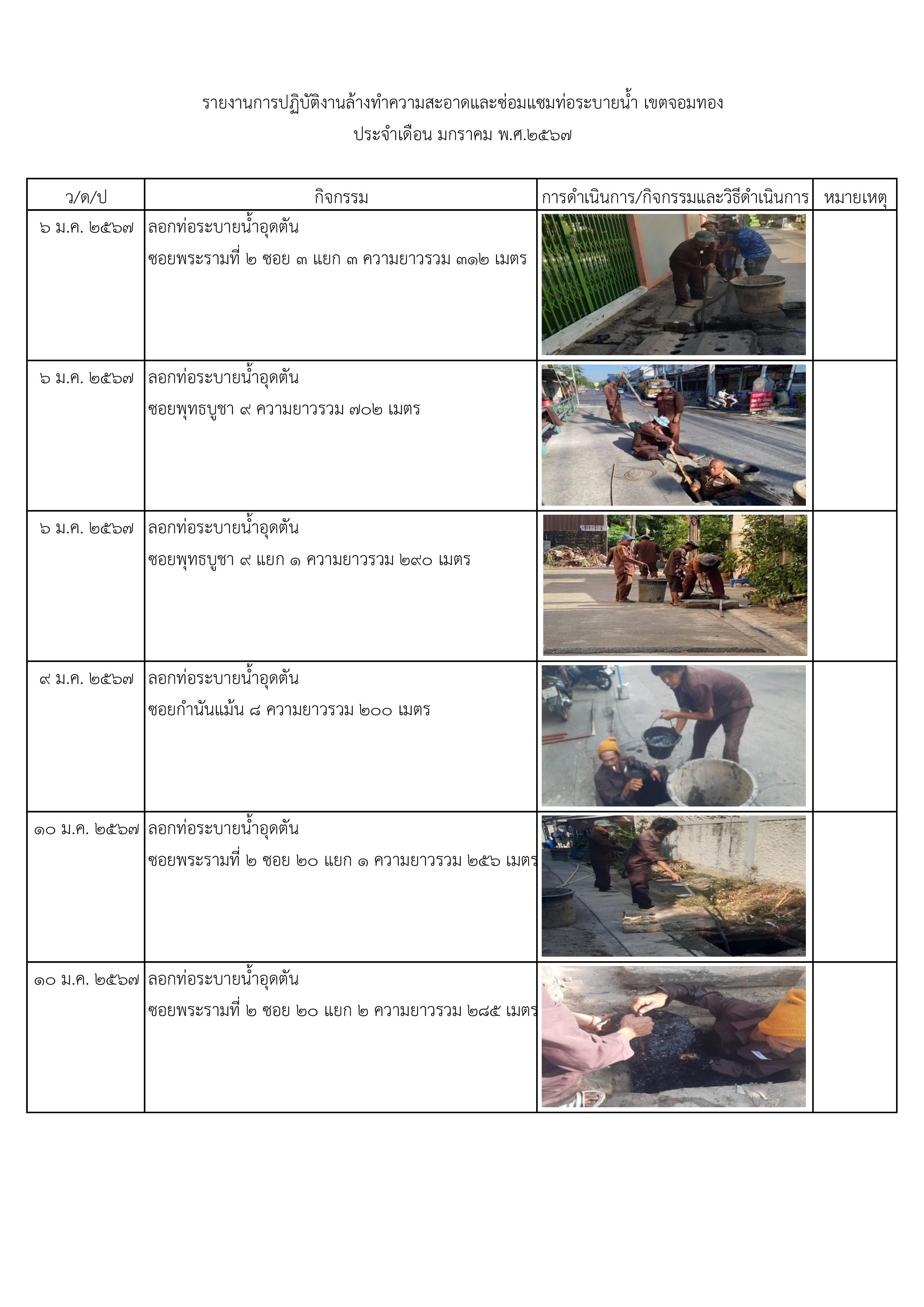 | 22 | ![]() | 2024-03-21 00:00:00.0000000 | 12.00 | 0.00 | ดำเนินการลอกท่อระบายน้ำ ในพื้นที่เขตจอมทอง | ||