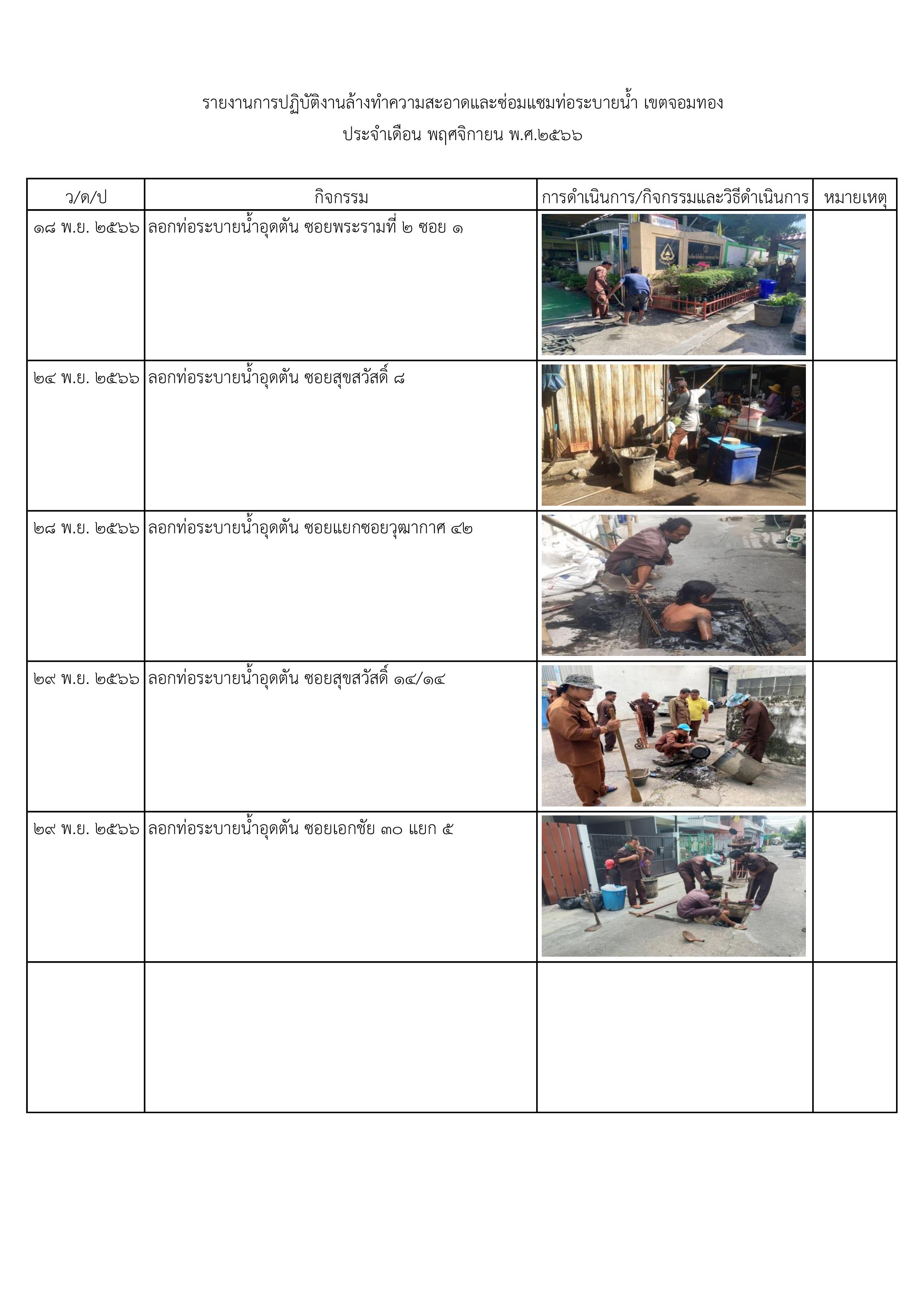 | 22 | ![]() | 2024-05-18 00:00:00.0000000 | 20.00 | 0.00 | ดำเนินการลอกท่อระบายน้ำ ในพื้นที่เขตจอมทอง | ||