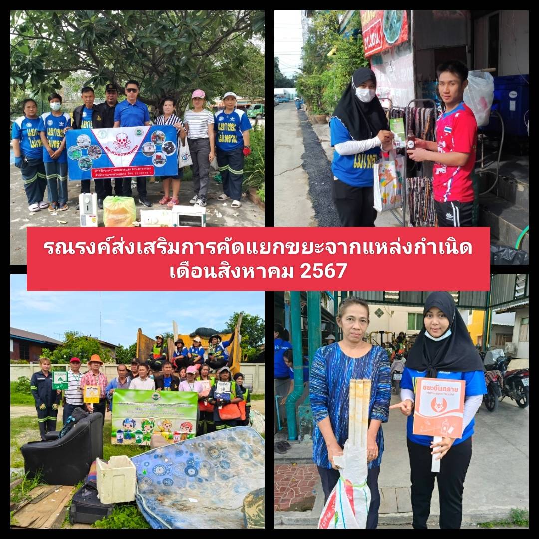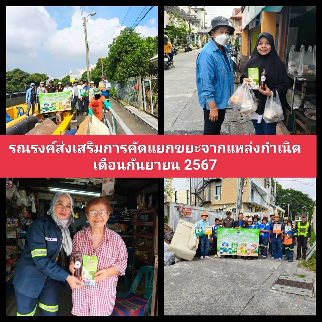 | 586 | ![]() | 2024-09-30 00:00:00.0000000 | 5.00 | 0.00 | ดำเนินการรณรงค์ส่งเสริมการคัดแยกขยะและการจัดการขยะจากแหล่งกำเนิด ประจำเดือน กันยายน 2567 จำนวน 5 แห่ง 1. ชุมชนธรรมานุรักษ์ 2.ชุมชนภูมิสุข 3.ชุมชนร่วมพัฒนาบ้านป่า 4.ริมคลองประเวศบุรีรมย์ 5.ชุมชนเกษมสันต์ 1 | ||