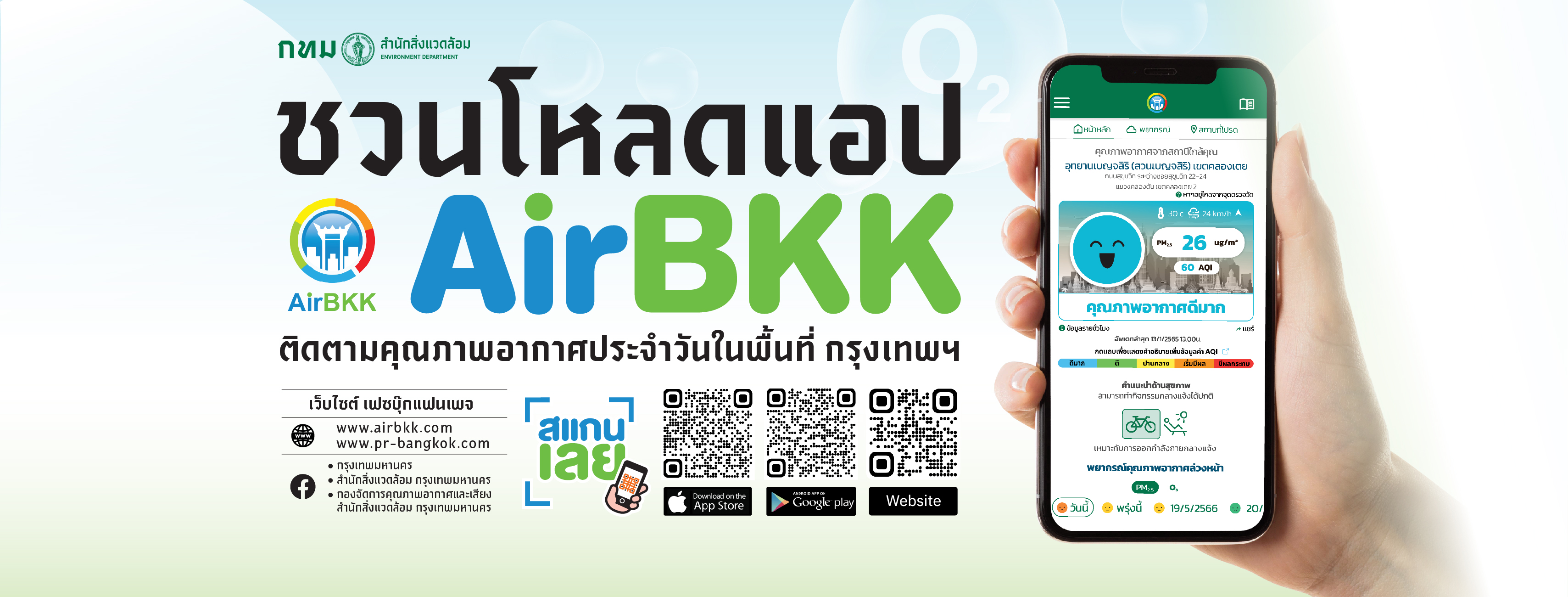 | 458 |  | 2023-12-28 00:00:00.0000000 | 0.00 | 0.00 |  | การพยากรณ์ แจ้งเตือน ป้องกันฝุ่น PM2.5 ผ่านแอปพลิเคชัน AirBKK - การพยากรณ์คุณภาพอากาศล่วงหน้า 3 วัน ได้แก่ ฝุ่นละออง PM2.5 (ฝุ่นละออง PM2.5 เฉลี่ย 24 ชั่วโมงย้อนหลัง) และก๊าซโอโซน (O3) ในแต่ละพื้นที่ที่ตั้งสถานีตรวจวัดฯ แสดงเป็นสัญลักษณ์สีรายชั่วโมง และ | |