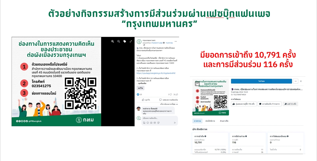 ![]() | 4 | จัดกิจกรรมฯ เพื่อสร้างความเข้าใจ และสร้างการมีส่วนร่วมในการพัฒนากรุงเทพมหานคร ผ่านแพลตฟอร์มออนไลน์และโซเชียลมีเดีย ตามที่กำหนดไม่น้อยกว่า 12 ครั้ง | 8.00 | 2024-02-01 00:00:00.0000000 | 2024-08-31 00:00:00.0000000 |