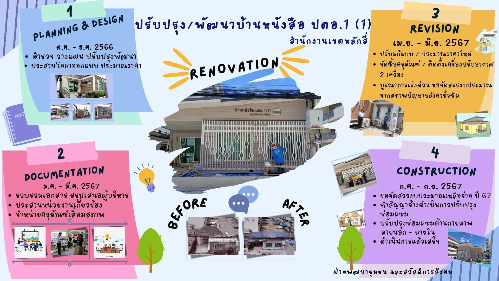 | 14 | ![]() | 2024-08-22 00:00:00.0000000 | 0.00 | 0.00 | อยู่ระหว่างดำเนินการปรับปรุงซ่อมแซม ภายนอก - ภายใน บ้านหนังสือ ปตอ.1(1) | ||