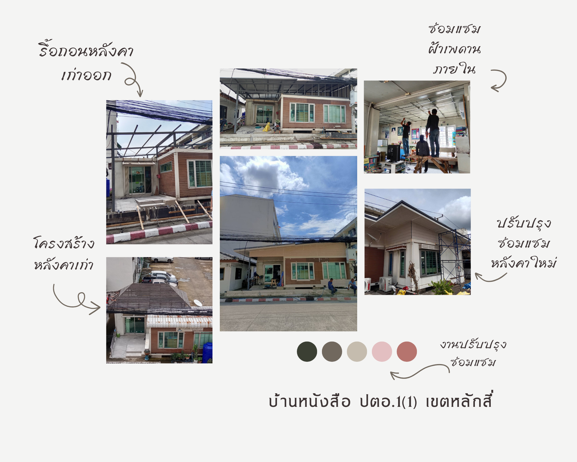 | 14 | ![]() | 2023-11-23 00:00:00.0000000 | 0.00 | 0.00 | สำรวจและวางแผนซ่อมแซมบ้านหนังสือ ปตอ.1(1) , ประสานแจ้งสภาพปัญหาฝ่ายโยธาเพื่อลงพื้นที่ตรวจสอบวางแผนซ่อมแซม และประมาณราคาการปรับปรุงซ่อมแซม ควบคู่กับการเริ่มจำหน่ายครุภํณฑ์เก่า | ||