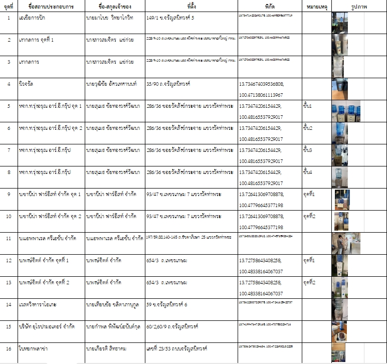 ![]() | - | จุดบริการน้ำดื่มฟรี สะอาดปลอดภัย (เอกชน) | 0.00 | 100.00 | สำนักงานเขตบางกอกใหญ่ | ฝ่ายปกครอง |