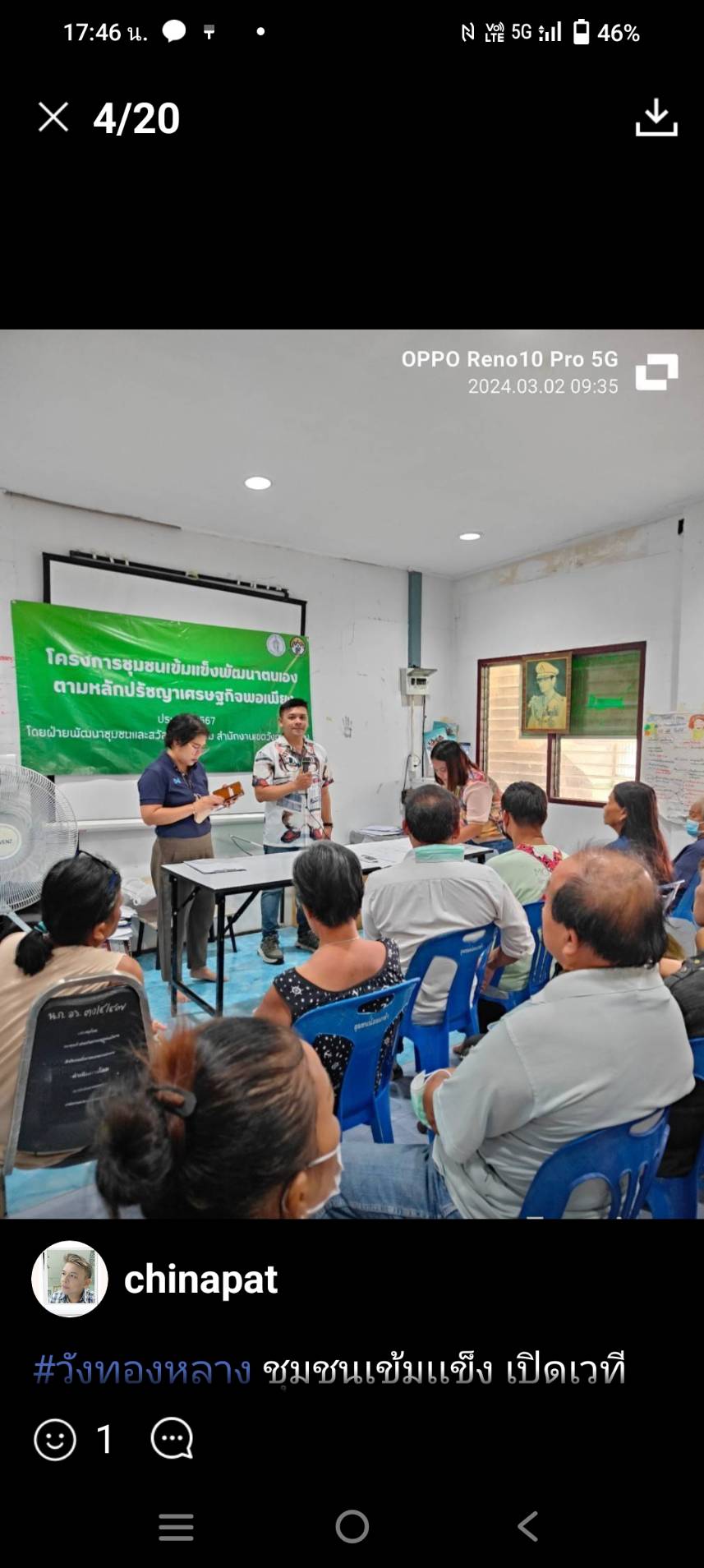 192024-02-28 00:00:00.00000000.000.00วันที่ 22 กุมภาพันธ์ เปิดเวทีโครงการชุมชนเข้มแข็งพัฒนาตนเองตามหลักปรัชญาเศรษฐกิจพอเพียง ประจำปี 2567 ณ ชุมชนรามคำแหง 53 ทางชุมชนขอให้มีการปรับพื้นถนน
