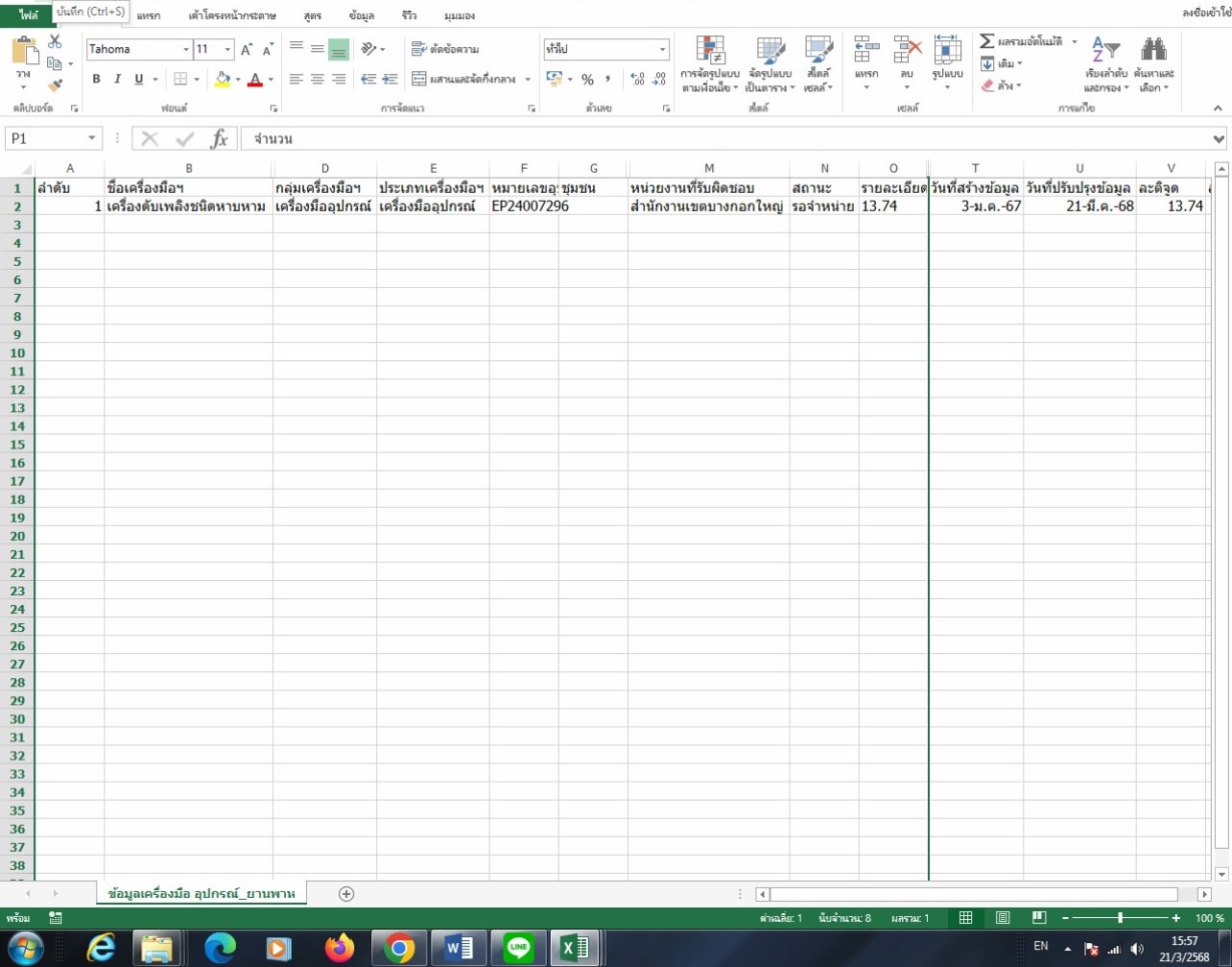 51022025-08-27 00:00:00.00000000.000.00สำนักงานเขตบางกอกใหญ่ได้ตรวจสอบเครื่องดับเพลิงชนิดหาบหามเรียบร้อยแล้ว พบสถานะชำรุดอยู่ระหว่างรอจำหน่าย และได้ดำเนินการรายงานในระบบฯ ประจำเดือนสิงหาคมเรียบร้อยแล้ว