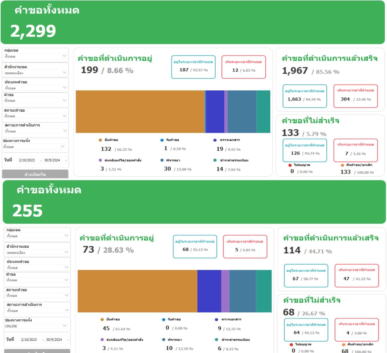 | 1414 |  | 2024-09-30 00:00:00.0000000 | 2.00 | 0.00 |  | จำนวนผู้รับบริการประจำปีงบประมาณ พ.ศ. 2567 ทั้งหมด 2,299 ราย ออนไลน์ 255 ราย คิดเป็นร้อยละ 11.09 | |
