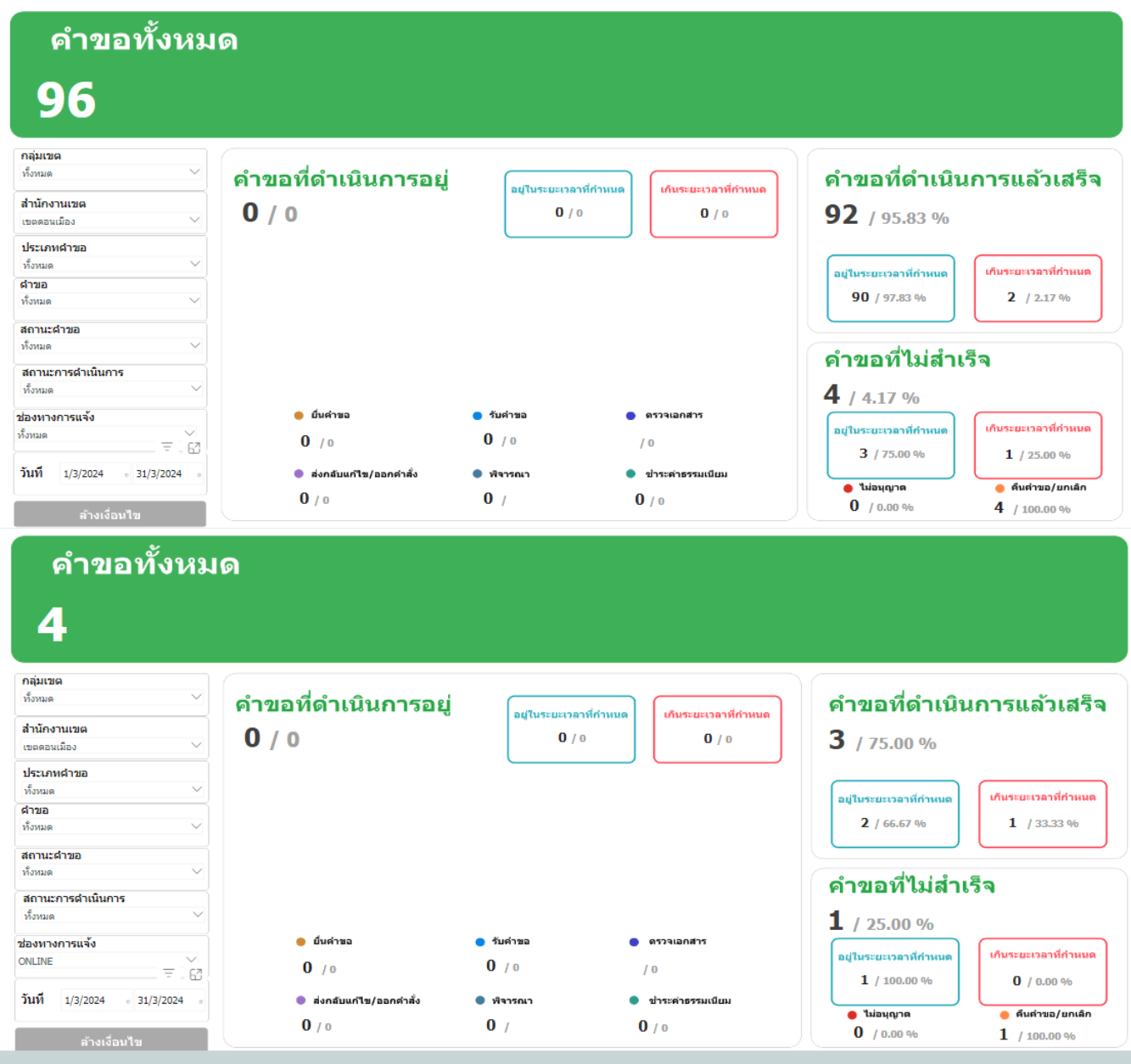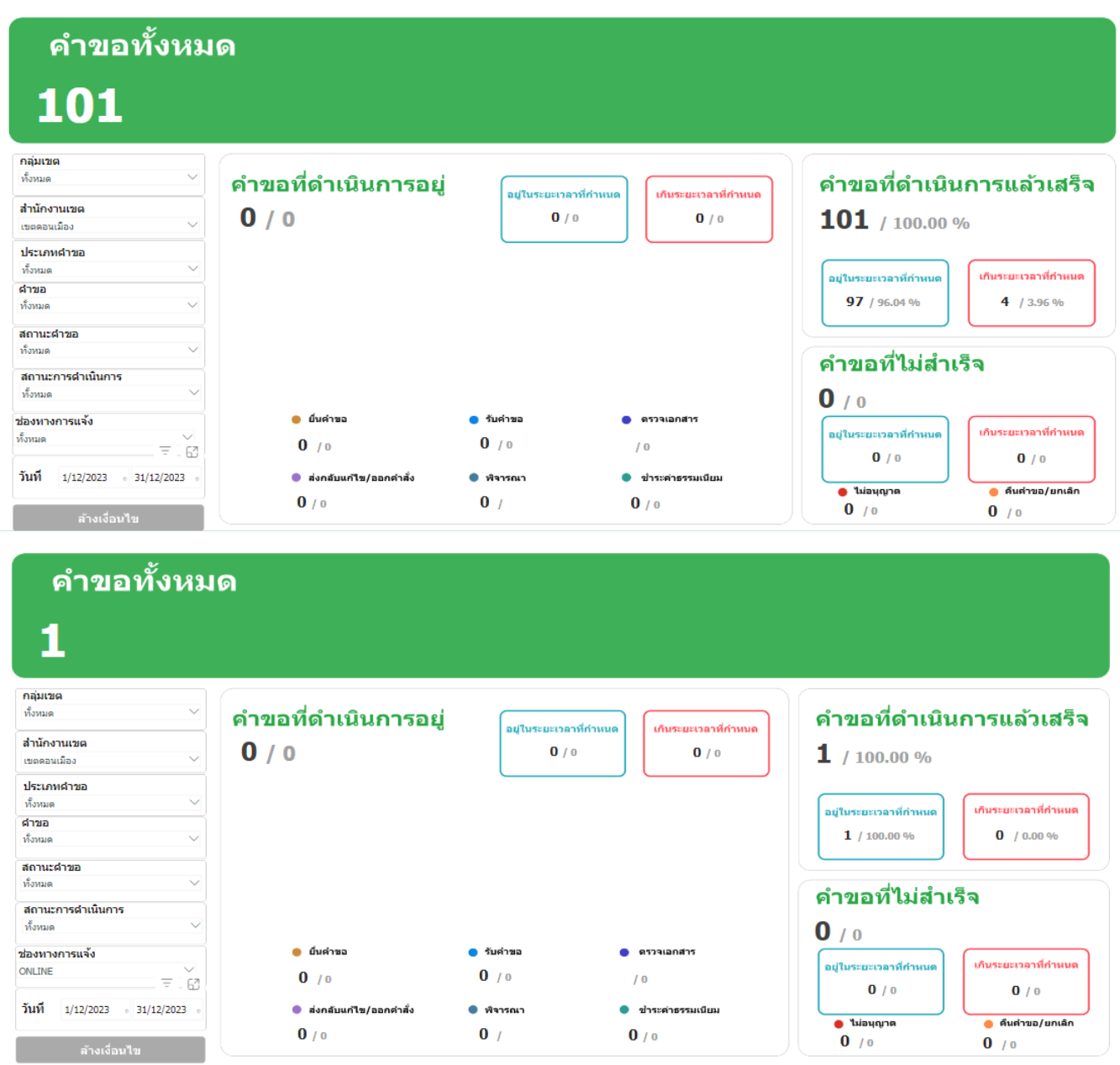 | 1414 |  | 2024-09-02 00:00:00.0000000 | 0.00 | 0.00 |  | ผู้รับบริการผ่านระบบ BMA OSS ประจำเดือนธันวาคม 2566 ทั้งหมดจำนวน 101 ราย Online จำนวน 1 ราย คิดเป็นร้อยละ 1 | |
