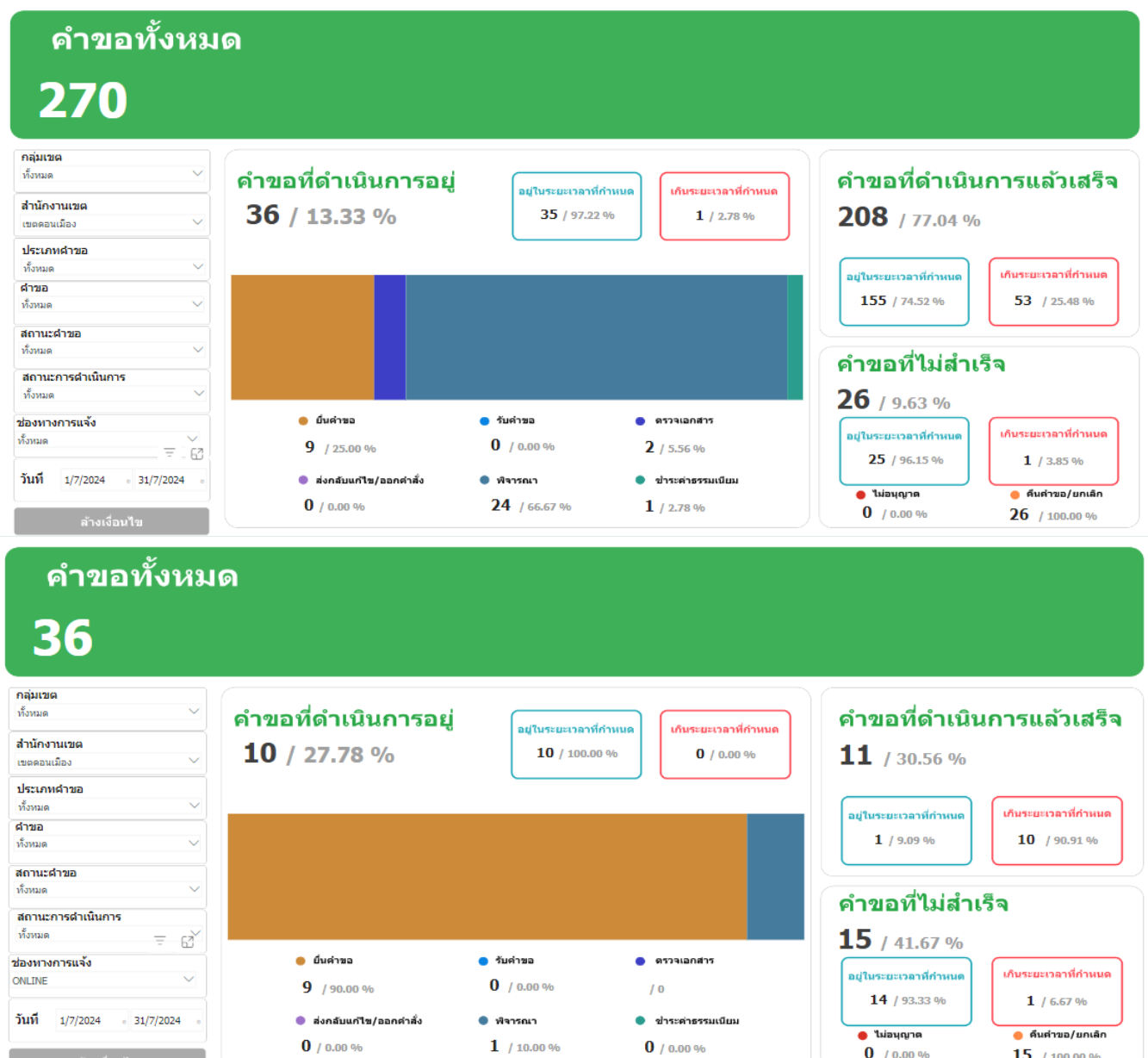 | 1414 |  | 2024-09-02 00:00:00.0000000 | 0.00 | 0.00 |  | ผู้รับบริการผ่านระบบ BMA OSS ประจำเดือนกรกฎาคม 2567 ทั้งหมดจำนวน 270 ราย Online จำนวน 36 ราย คิดเป็นร้อยละ 13.33 | |