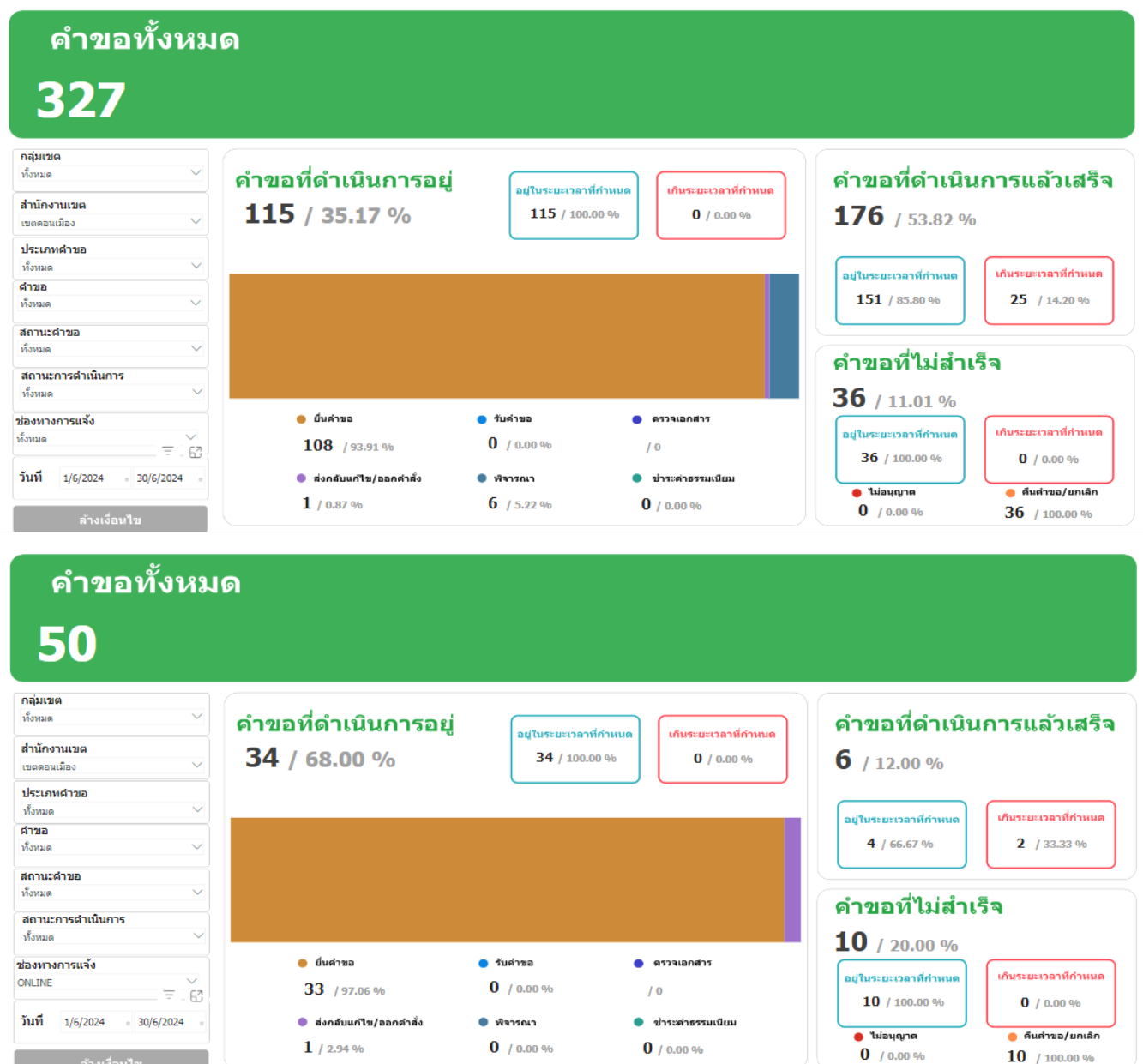 | 1414 |  | 2024-09-02 00:00:00.0000000 | 0.00 | 0.00 |  | ผู้รับบริการผ่านระบบ BMA OSS ประจำเดือนมิถุนายน 2567 ทั้งหมดจำนวน 327 ราย Online จำนวน 50 ราย คิดเป็นร้อยละ 15.3 | |