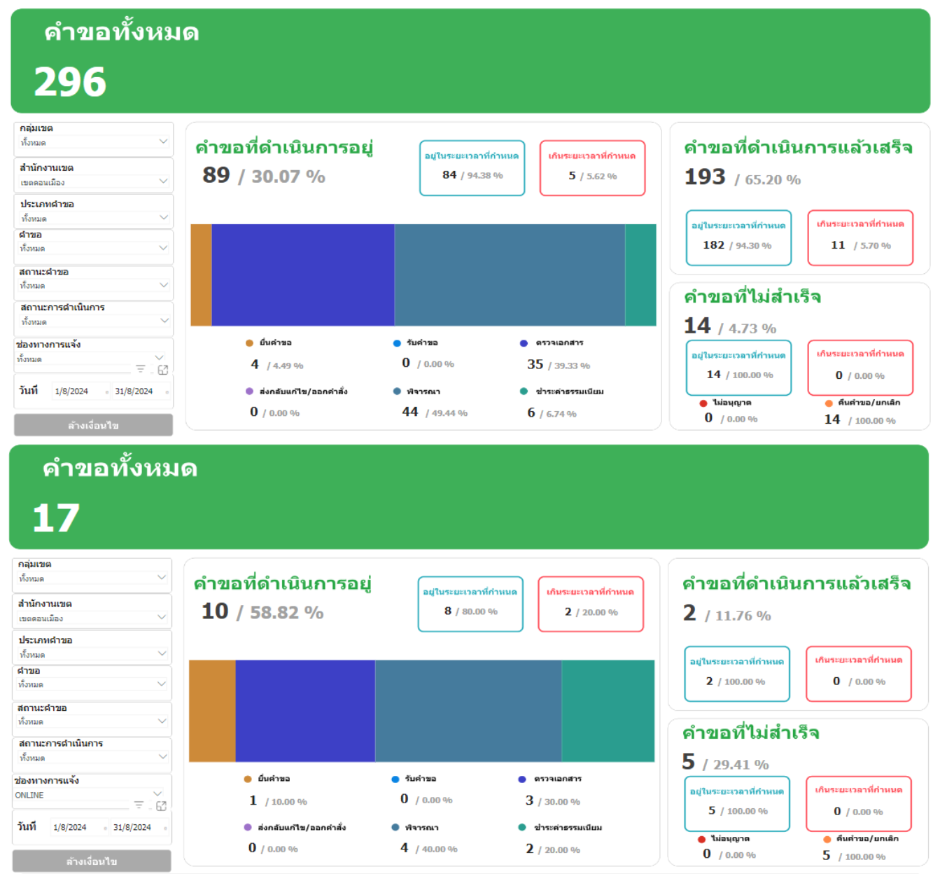 | 1414 |  | 2024-09-02 00:00:00.0000000 | 0.00 | 0.00 |  | ผู้รับบริการผ่านระบบ BMA OSS ประจำเดือนสิงหาคม 2567 ทั้งหมดจำนวน 296 ราย Online จำนวน 17 ราย คิดเป็นร้อยละ 5.74 | |