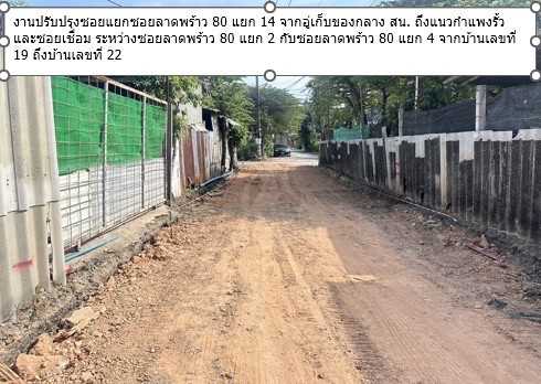 รายละเอียดโครงการ : (5) ปรับปรุงซอยแยกซอยลาดพร้าว 80 แยก 14 จากอู่เก็บของกลาง สน. ถึงแนวกำแพงรั้ว และซอยเชื่อมระหว่างซอยลาดพร้าว 80 แยก 2 กับซอยลาดพร้าว 80 แยก 4 จากบ้านเลขที่ 19 ถึงบ้านเลขที่ 22 (ID: 5261)