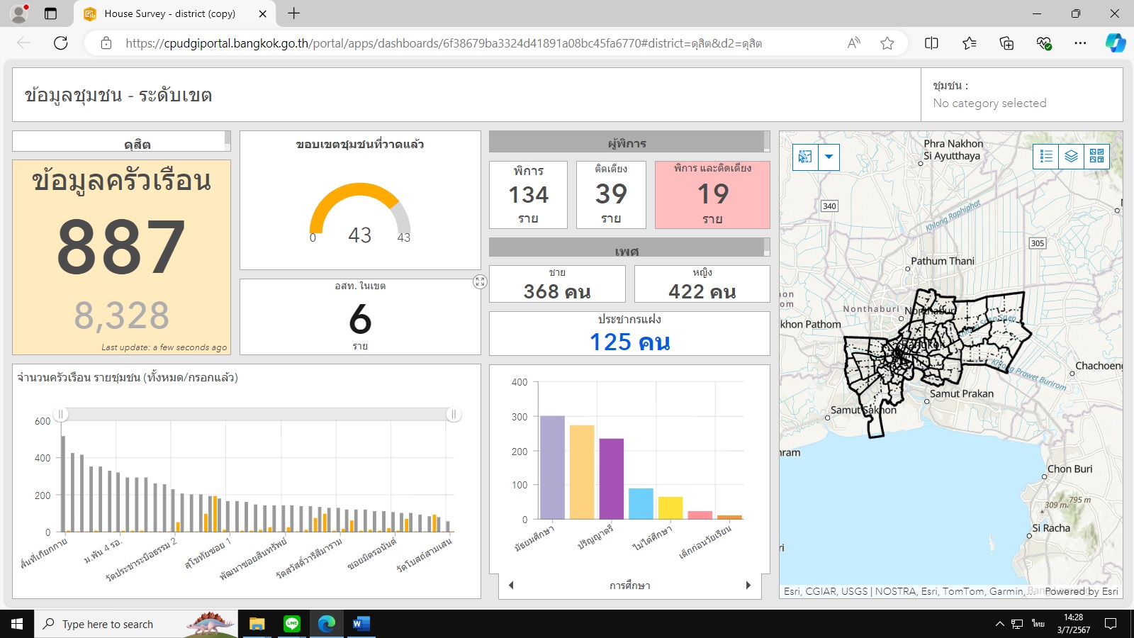 3สนข. ร่วมกับคณะกรรมการชุมชน หรืออาสาสมัครพัฒนาชุมชน (ด้านเทคโนโลยี) ดำเนินการสำรวจและนำเข้าข้อมูล ในระบบนำเข้าข้อมูลแผนผังชุมชน (One Map) ไม่น้อยกว่าร้อยละ 60 ของชุมชนในพื้นที่เขต20.002023-11-01 00:00:00.00000002024-08-31 00:00:00.0000000
