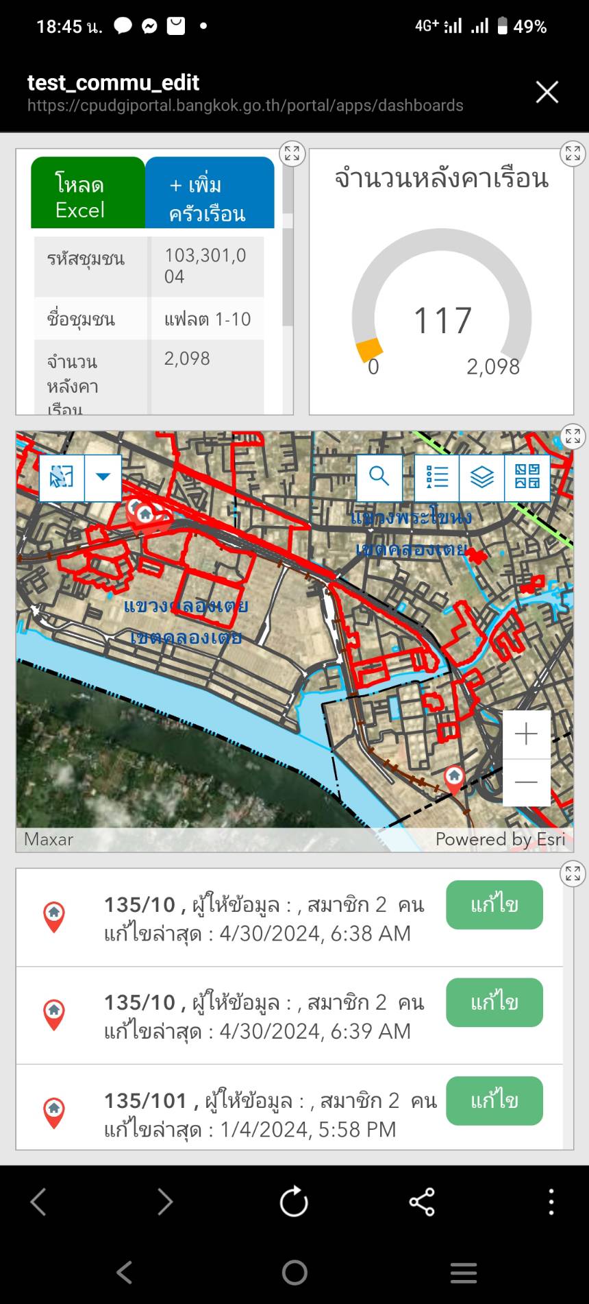 | 18 | ![]() | 2024-05-30 00:00:00.0000000 | 2.00 | 0.00 | ลงข้อมูลชุมชนทั้งหมด 2 ชุมชน ได้เเก่ ชุมชนซอยเจริญสุขและชุมชนแฟลต 19-22 | ||