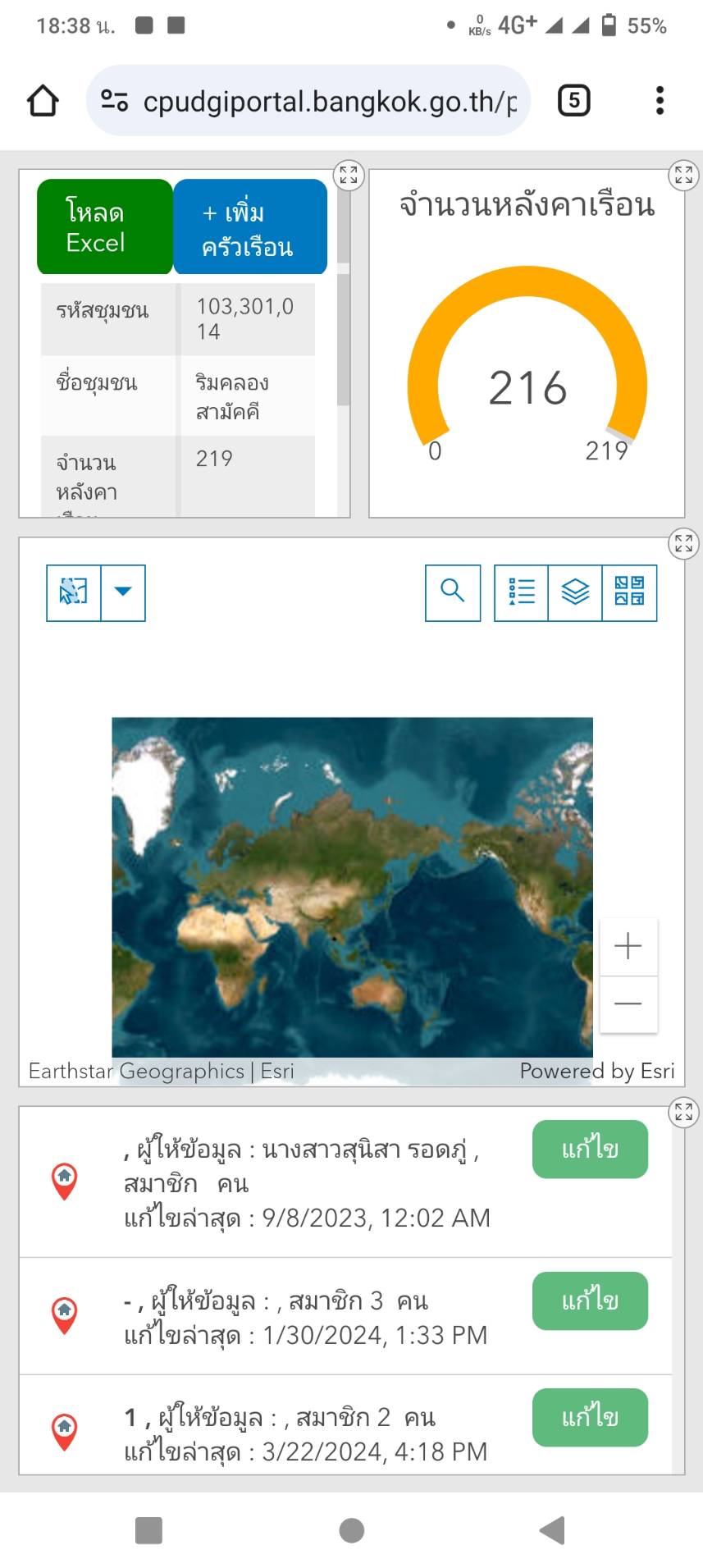 | 18 | ![]() | 2024-03-22 00:00:00.0000000 | 2.00 | 0.00 | สำรวจข้อมูลชุมชนเพิ่มอีก 2 ชุมชนได้แก่ ชุมชนน้องใหม่ และ ชุมชนแฟลต 11-18 | ||