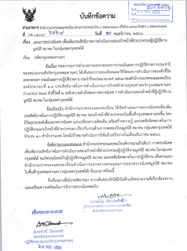 13802024-09-25 00:00:00.00000000.000.001. จัดทำคำสั่งแต่งตั้งคณะทำงานตรวจนิเทศเพื่อเพิ่มประสิทธิภาพในการปฏิบัติงานมูลนิธิ สมาคม ของเจ้านหน้าที่ฝ่ายปกครองในพื้นที่กรุงเทพมหานคร ตามคำสั่งสำนักงานปกครองและทะเบียน ที่ 23/2566 ลงวันที่ 6 พฤศจิกายน 2566 2. จัดทำคู่มือและแนวทางการปฏบัติงานของเจ้าหน้าที่ผู้ปฏิบัติงานมูลนิธิ สมาคม 3. จัดทำแผนการออกตรวจนิเทศเจ้าหน้าที่ผู้ปฏิบัติงานมูลนิธิ สมาคม ในกลุ่มเขตกรุงเทพใต้ เสนอผู้บริหารกรุงเทพมหานครพิจารณาให้ความเห็นชอบ