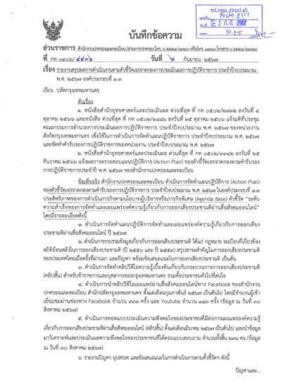13842024-09-25 00:00:00.000000020.000.00มีแผนปฏิบัติการจัดทำและเผยแพร่องค์ความรู้ เกี่ยวกับการออกเสียงประชามติผ่านสื่อสังคมออนไลน์ ปี 2567 และเสนอผู้บริหารกรุงเทพมหานครให้ความเห็นชอบ