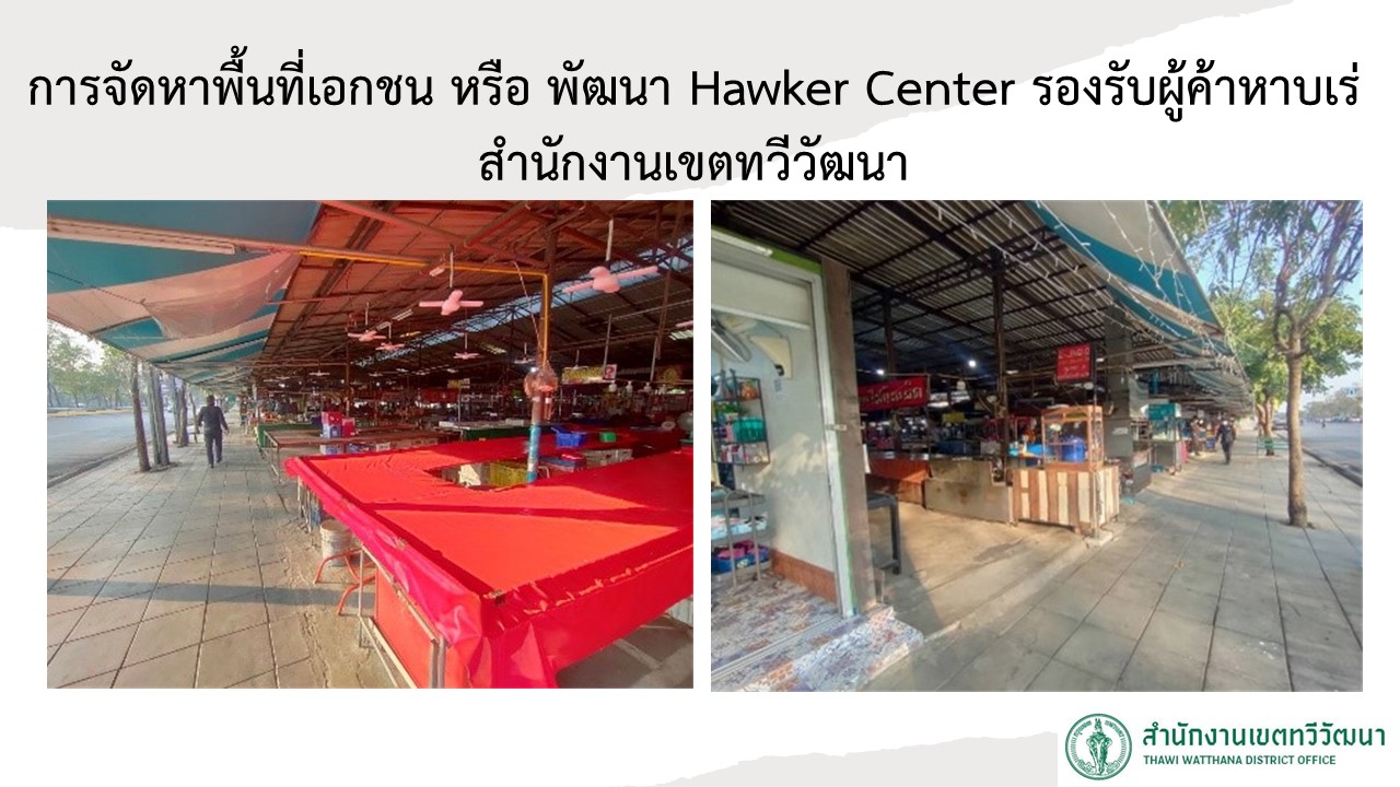 ![]() | - | กิจกรรมจัดหาพื้นที่เอกชน หรือ พัฒนา Hawker Center รองรับผู้ค้าหาบเร่ | 0.00 | 100.00 | สำนักงานเขตทวีวัฒนา | ฝ่ายเทศกิจ |