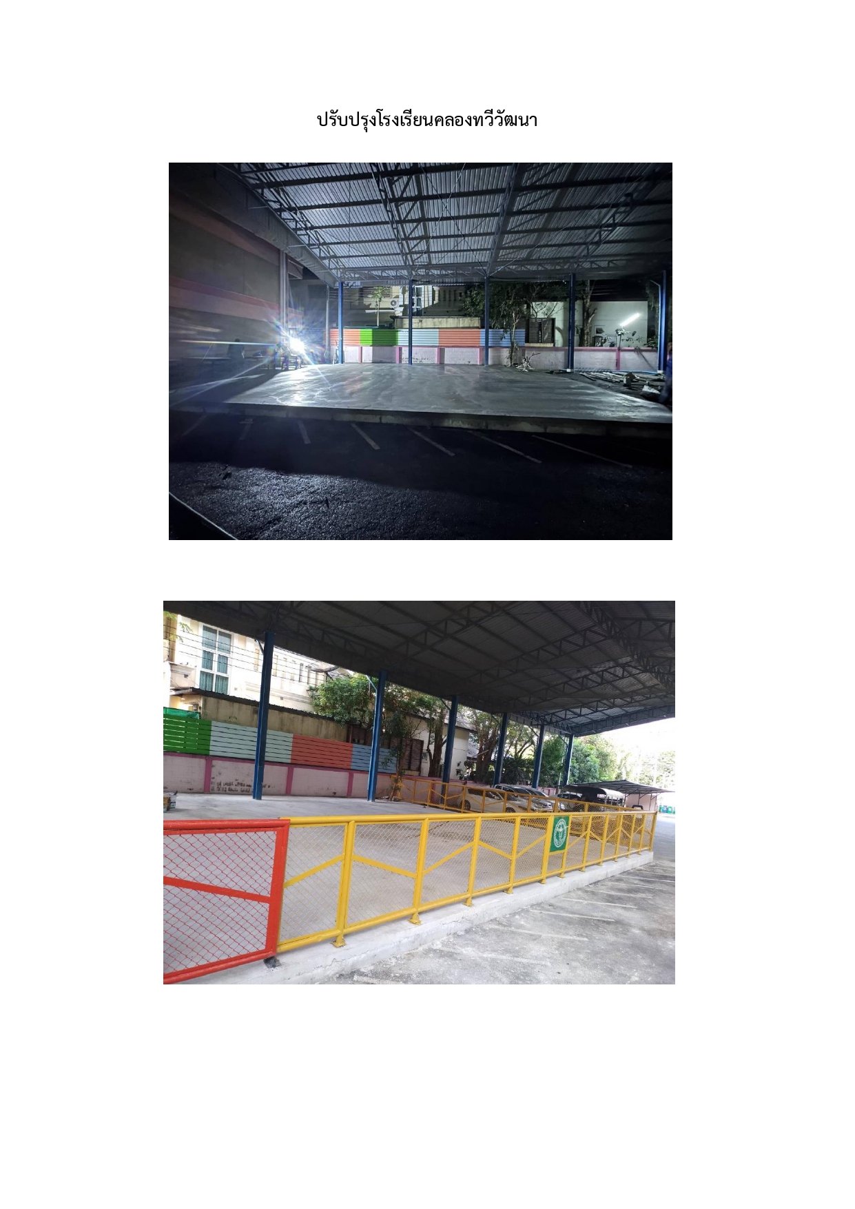 162024-03-27 00:00:00.00000000.000.00- สนามเด็กเล่น ดำเนินการแล้วเสร็จ - หลังคาคลุมช่องทางเดินระหว่างอาคารเรียน ดำเนินการแล้วเสร็จ - อยู่ระหว่างปรับปรุงผนังด้านข้างอาคารเรียน 2 และ 4 และติดตั้งตัวอักษรชื่อโรงเรียน ผลงานที่ได้ 90%