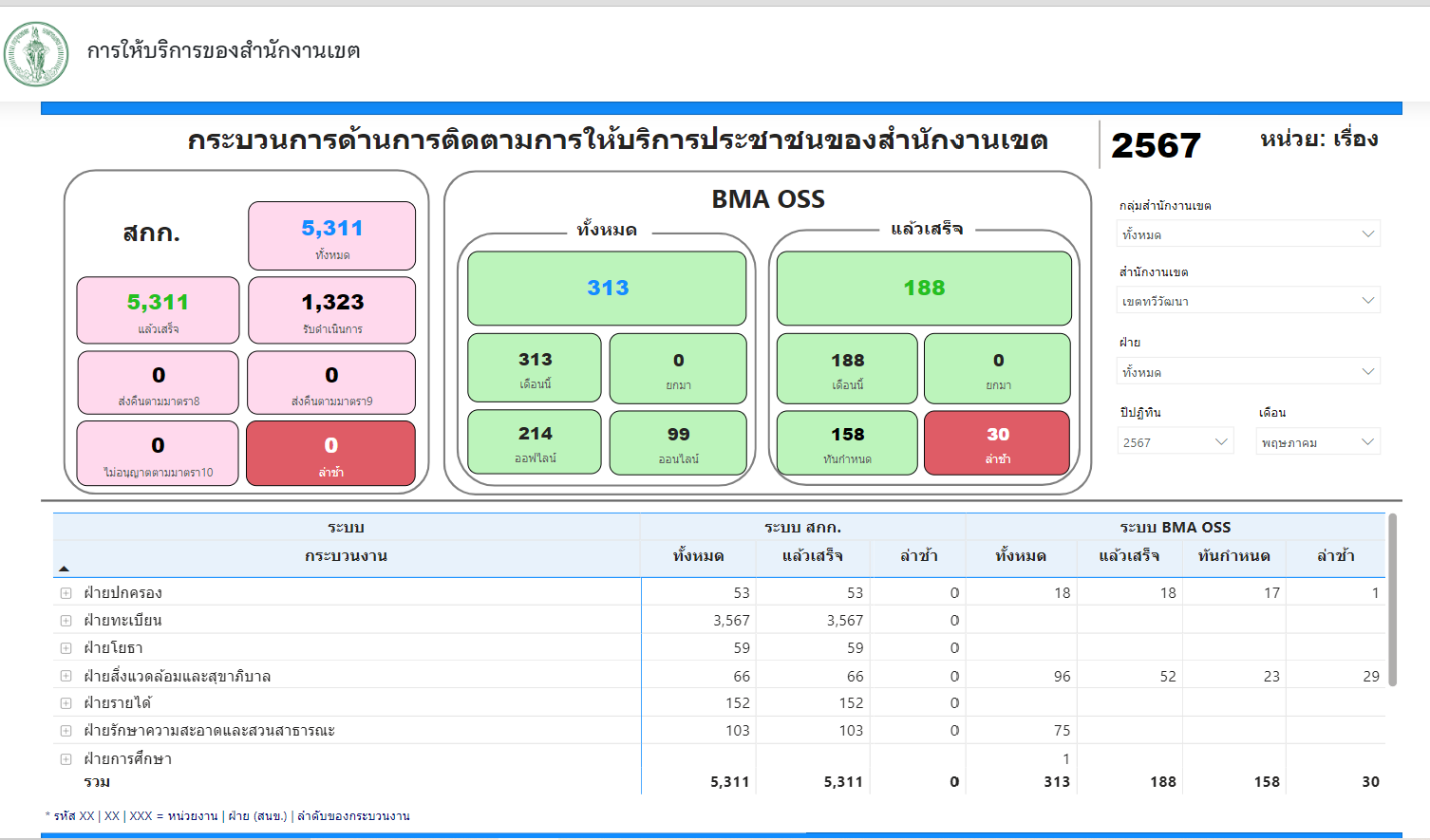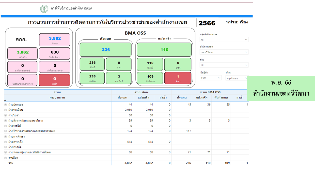 | 21 | ![]() | 2023-11-30 00:00:00.0000000 | 100.00 | 0.00 | การติดตามการให้บริการประชาชนของสำนักงานเขตทวีวัฒนา ประจำเดือน พฤศจิกายน พ.ศ. 2566 - จำนวนคำขอที่หน่วยงานได้รับทั้งหมด 3,862 คำขอ - จำนวนคำขอที่สามารถให้บริการตามพรบ. การอำนวยความสะดวกในการพิจาณาอนุญาตของทางราชการ พ.ศ. 2558 จำนวน 3,862 คำขอ คิดเป็น 100% | ||