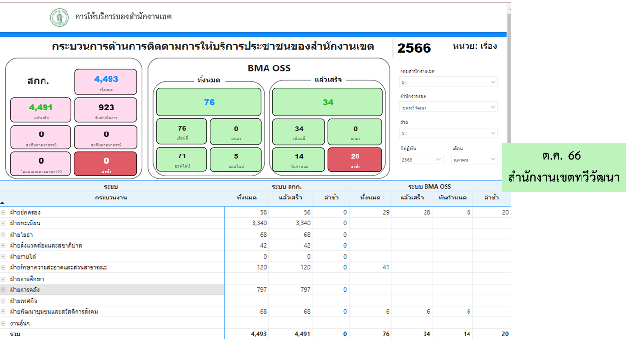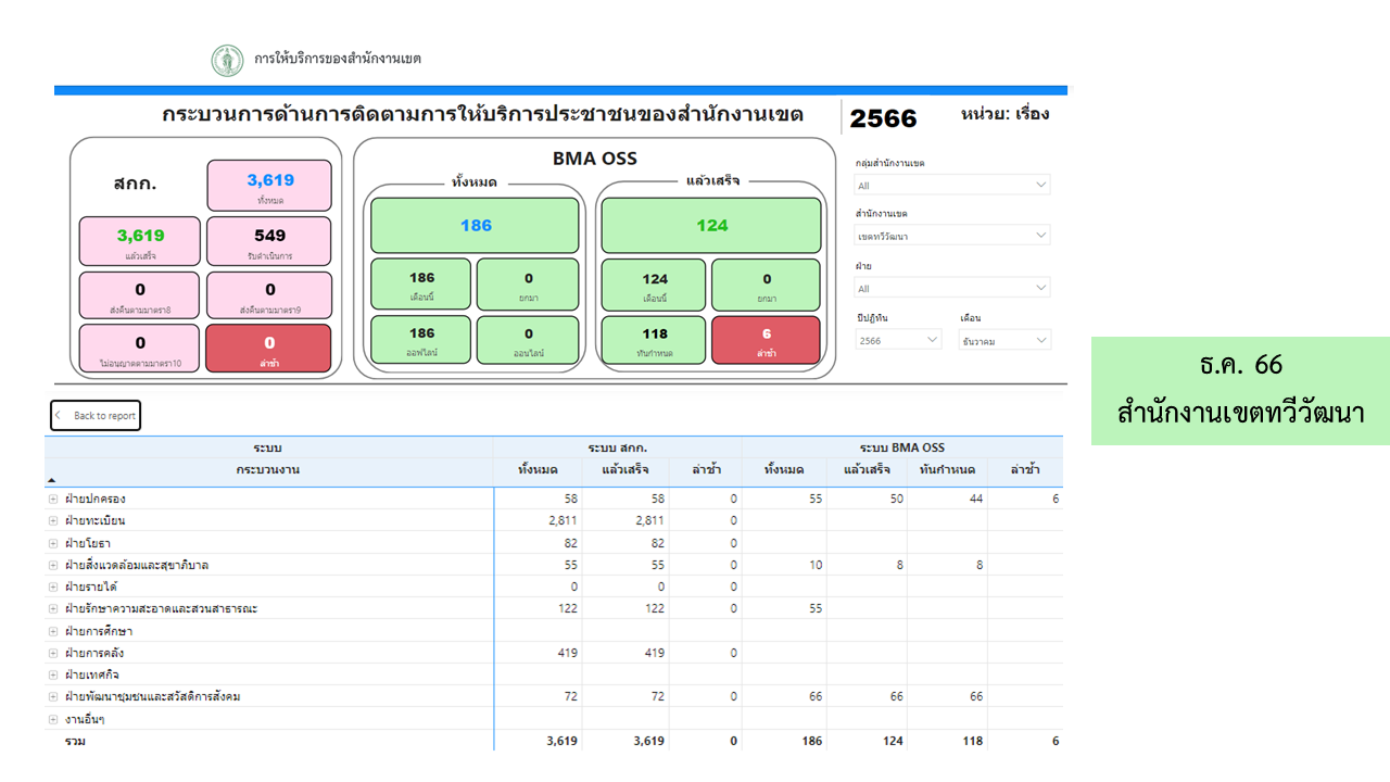 | 21 | ![]() | 2023-10-29 00:00:00.0000000 | 100.00 | 0.00 | การติดตามการให้บริการประชาชนของสำนักงานเขตทวีวัฒนา ประจำเดือน ตุลาคม พ.ศ. 2566 - จำนวนคำขอที่หน่วยงานได้รับทั้งหมด 4,493 คำขอ - จำนวนคำขอที่สามารถให้บริการตามพรบ. การอำนวยความสะดวกในการพิจาณาอนุญาตของทางราชการ พ.ศ. 2558 จำนวน 4,493 คำขอ คิดเป็น 100% |
