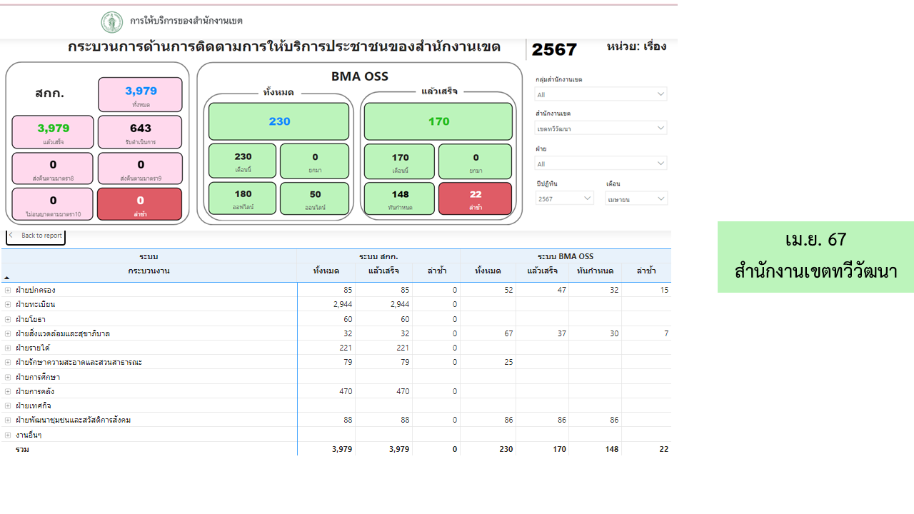 | 21 | ![]() | 2024-04-30 00:00:00.0000000 | 100.00 | 0.00 | การติดตามการให้บริการประชาชนของสำนักงานเขตทวีวัฒนา ประจำเดือน เมษายน พ.ศ. 2567 - จำนวนคำขอที่หน่วยงานได้รับทั้งหมด 3,979 คำขอ - จำนวนคำขอที่สามารถให้บริการตามพรบ. การอำนวยความสะดวกในการพิจาณาอนุญาตของทางราชการ พ.ศ. 2558 จำนวน 3,979 คำขอ คิดเป็น 100% | ||