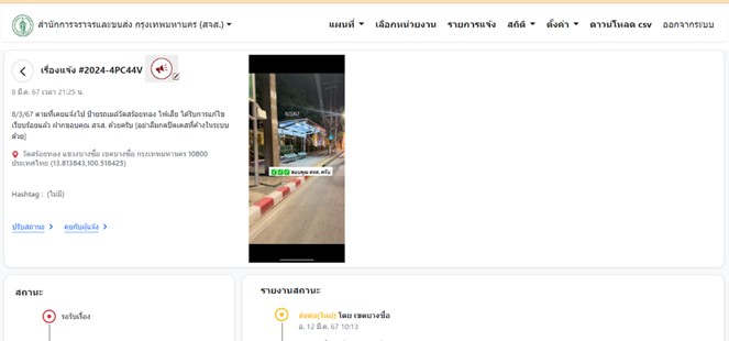 รายละเอียดโครงการ : การแก้ไขปัญหาเรื่องร้องเรียนของประชาชนผ่านระบบ Traffy Fondue (ร้อยละ) (ID: 6012)