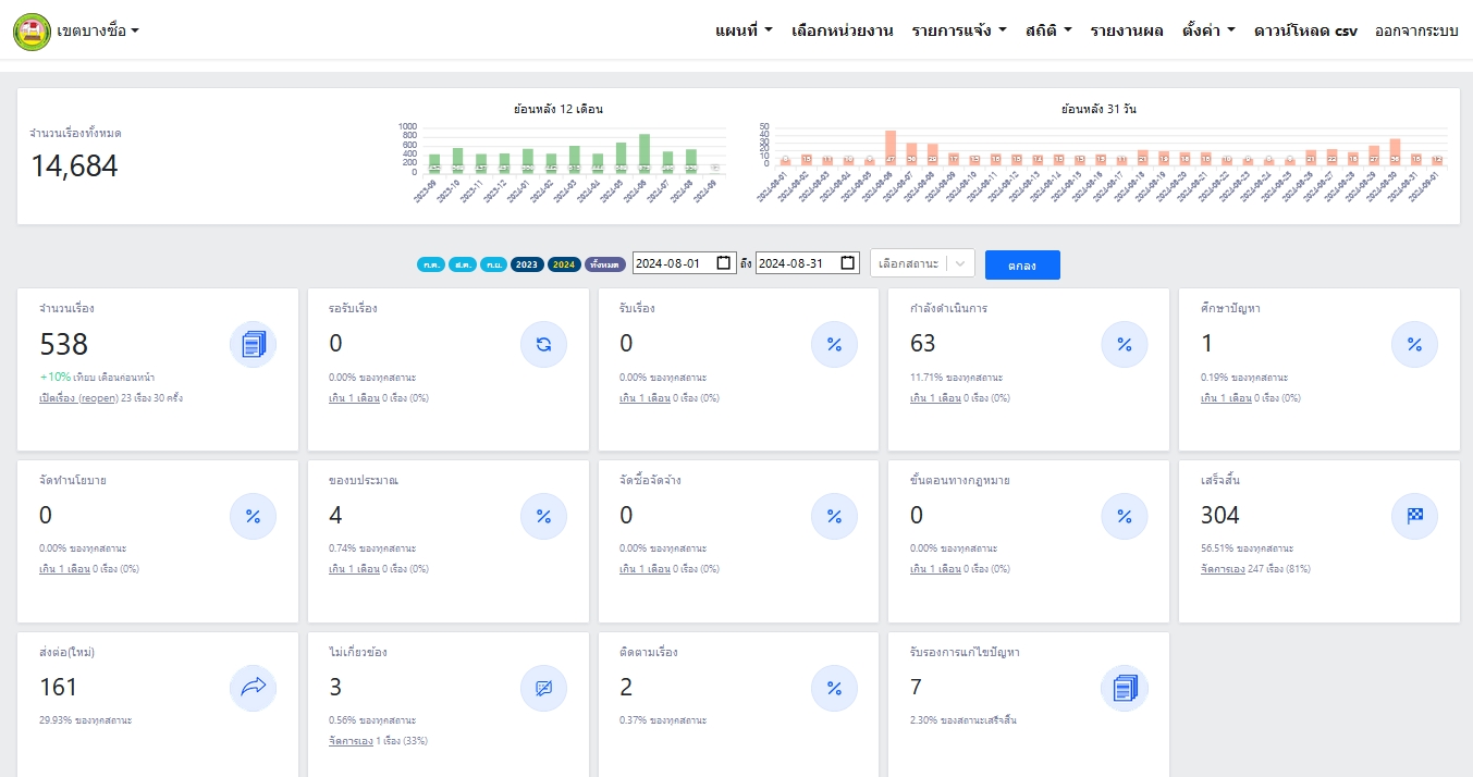 ![]() | - | การแก้ไขปัญหาเรื่องร้องเรียนของประชาชนผ่านระบบ Traffy Fondue (ร้อยละ) | 0.00 | 100.00 | สำนักงานเขตบางซื่อ | ฝ่ายปกครอง |