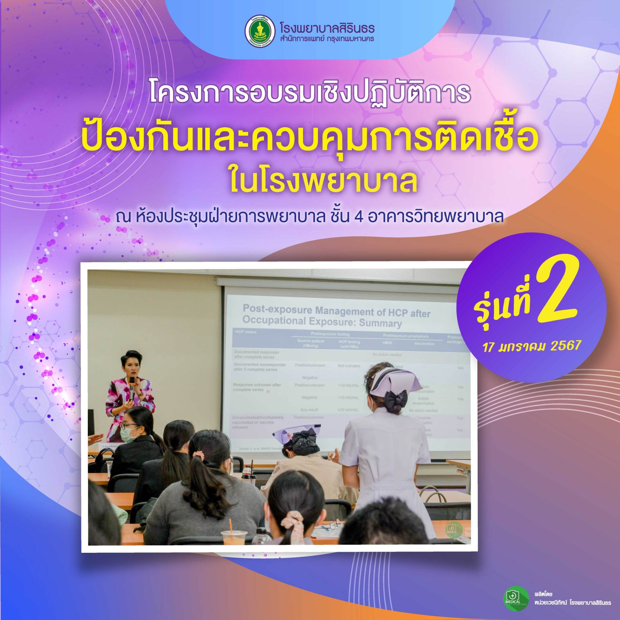 992024-02-19 00:00:00.000000010.000.00โรงพยาบาลสิรินธร สำนักการแพทย์ กรุงเทพมหานคร ได้ดำเนินการจัดโครงการอบรม เชิงปฏิบัติการการป้องกันและควบคุมการติดเชื้อในโรงพยาบาล ให้แก่ข้าราชการกรุงเทพมหานครสามัญ เสร็จเรียบร้อยแล้ว โดยใช้งบประมาณทั้งสิ้น 80,800 บาท