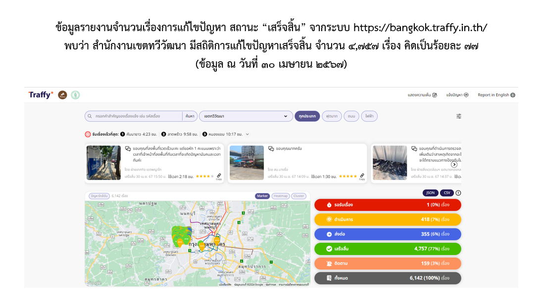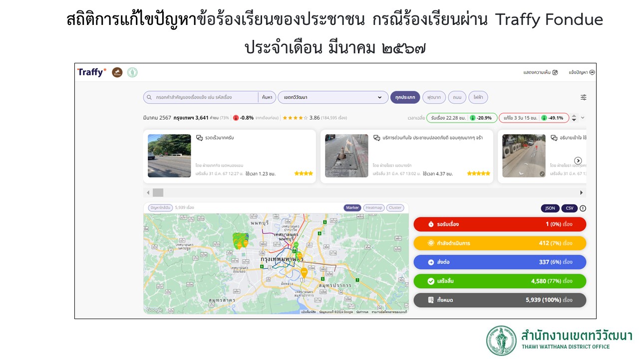 ![]() | - | กิจกรรมการแก้ปัญหาข้อร้องเรียนผ่านระบบ Traffy Foundue | 0.00 | 100.00 | สำนักงานเขตทวีวัฒนา | สำนักงานเขตทวีวัฒนา |